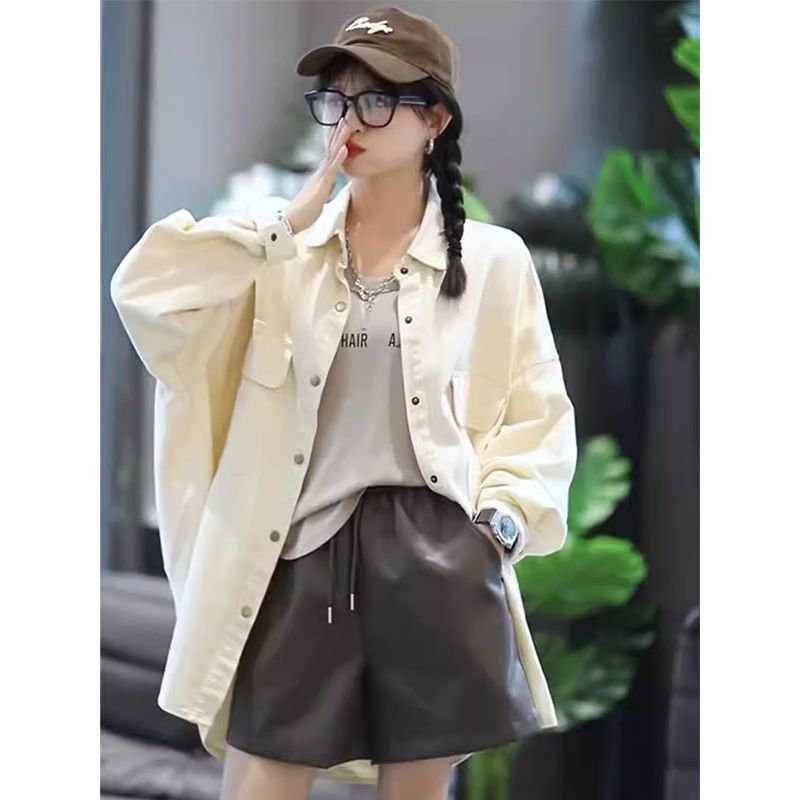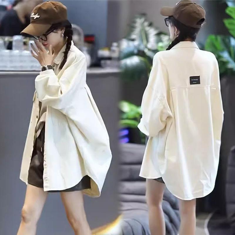 유럽 한국식 셔츠 여자 중간 길이 재킷 2023 가을 레트로 홍콩 스타일 느슨한 캐주얼 작은 탑