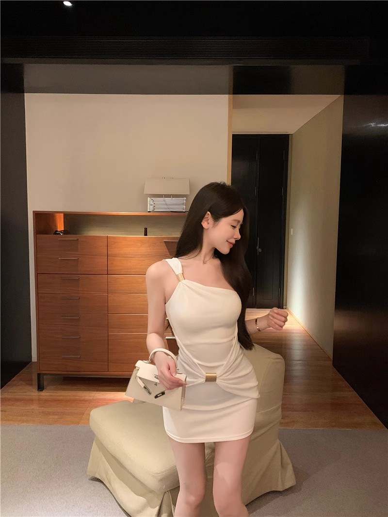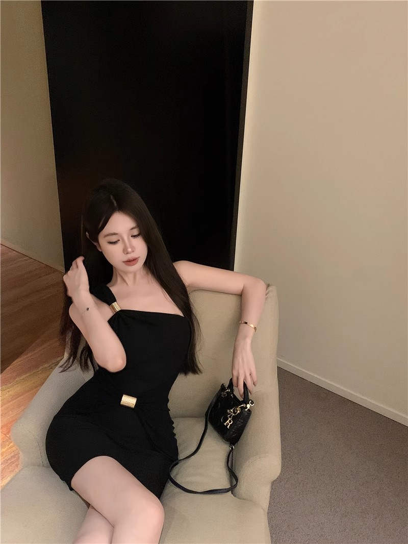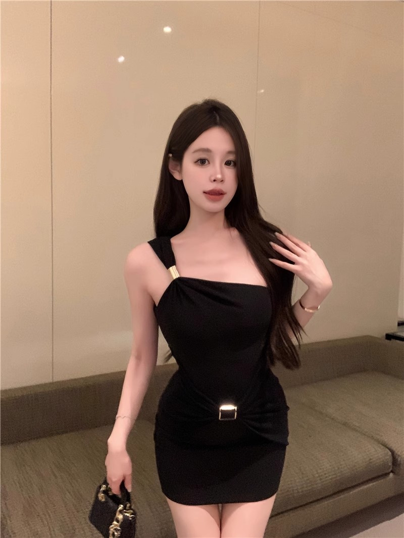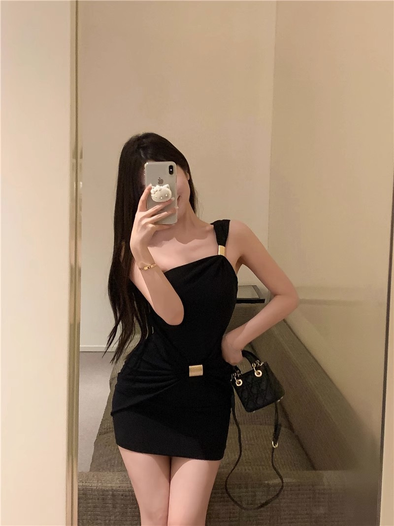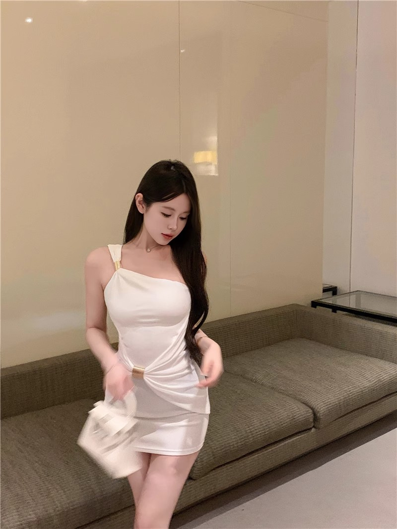 섹시한 스파이스 소녀 스타일 날씬한 어깨 싱글 어깨 슬링 원피스 여성 여름 새로운 슬림 핏 슬리밍 하이 엔드 힙합 스커트스토어 가기