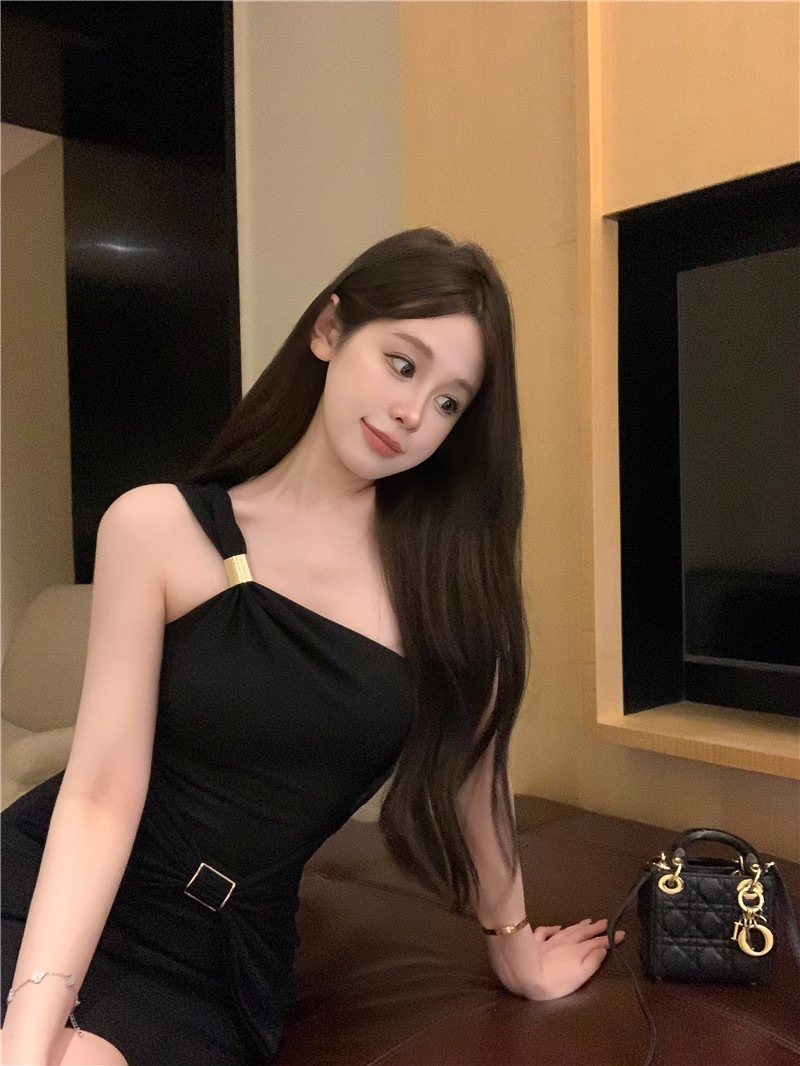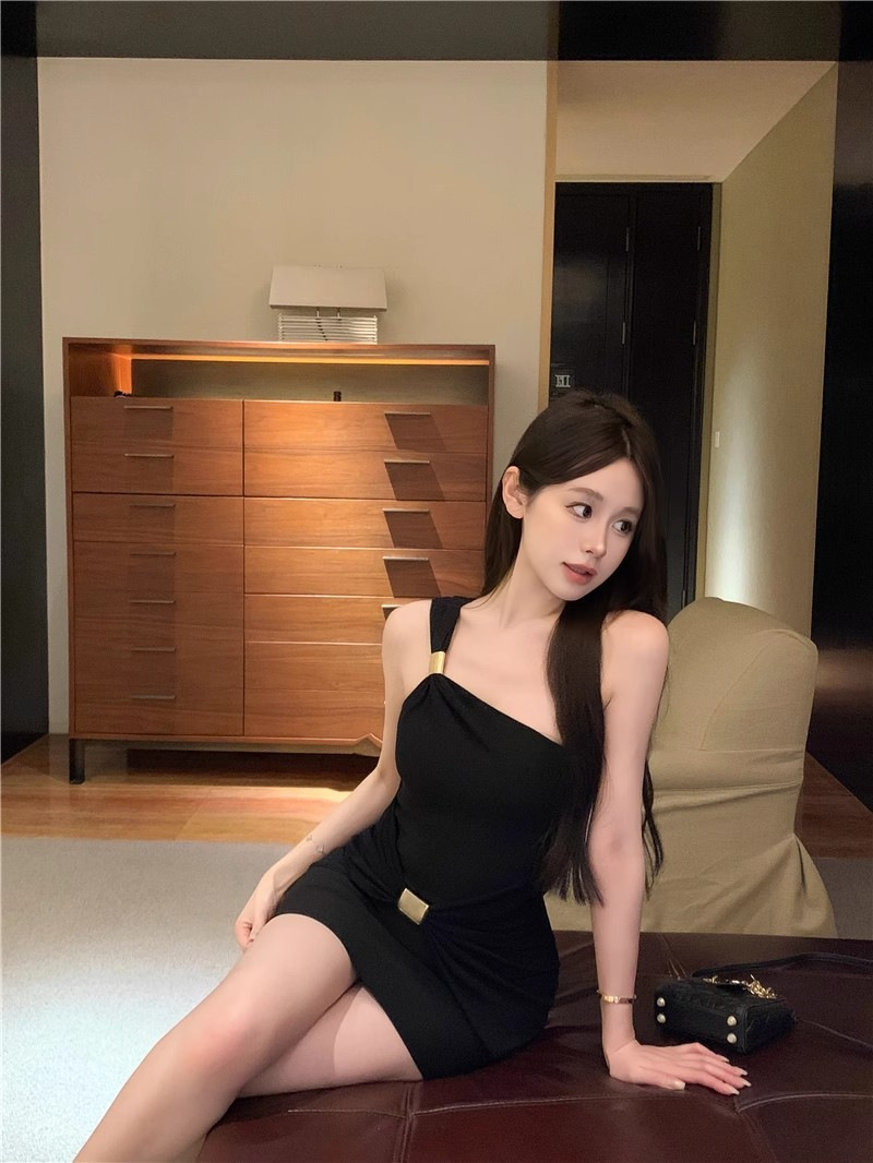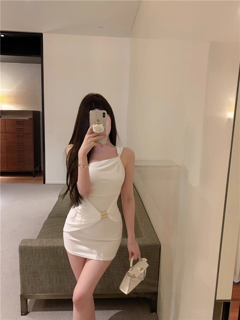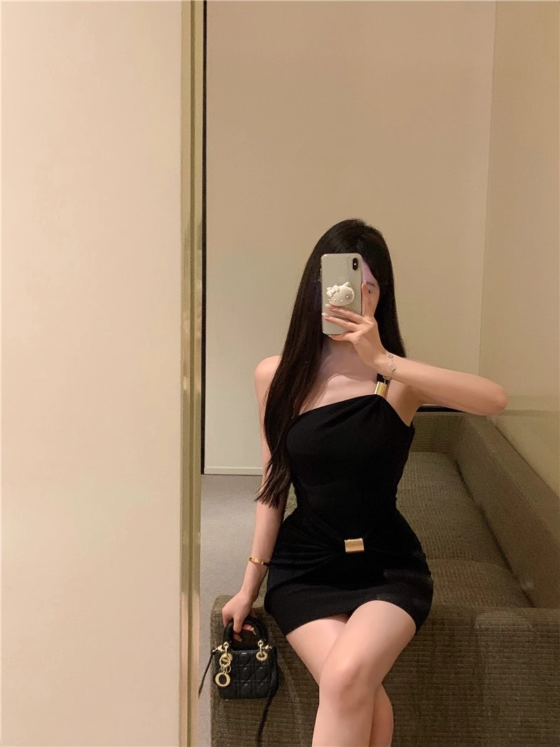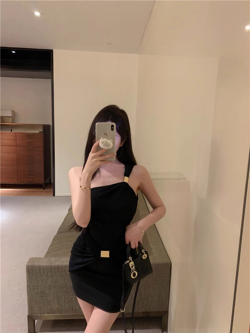 섹시한 스파이스 소녀 스타일 날씬한 어깨 싱글 어깨 슬링 원피스 여성 여름 새로운 슬림 핏 슬리밍 하이 엔드 힙합 스커트스토어 가기