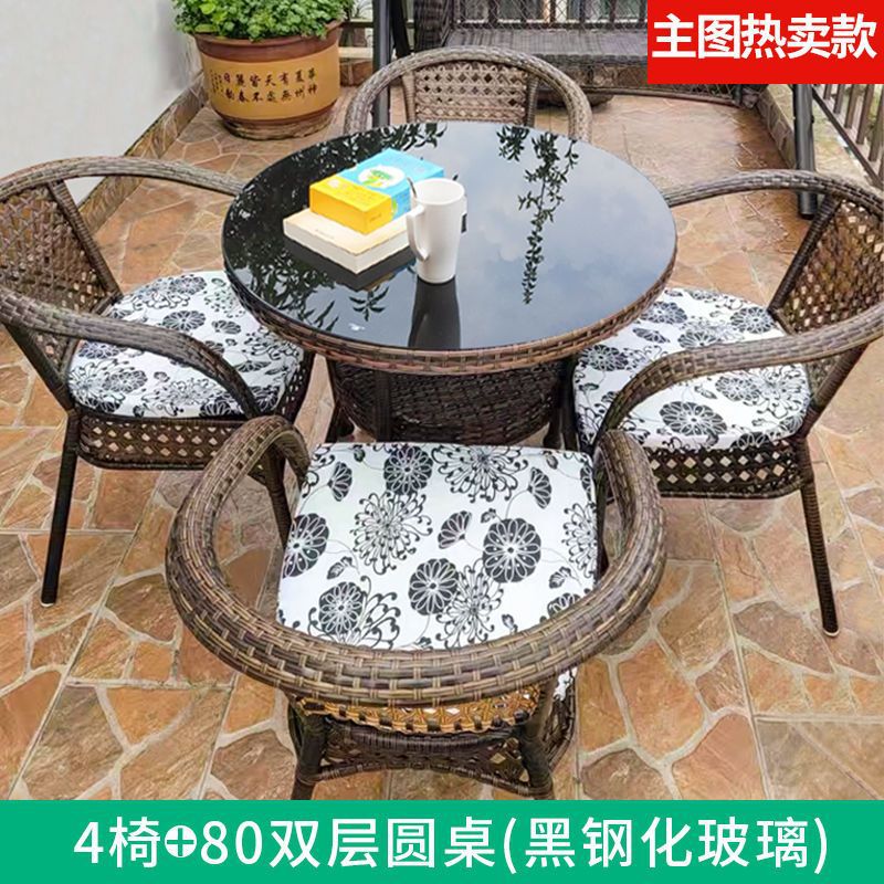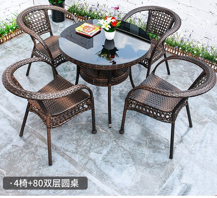 • 업그레이드된 대형 의자 4개 + 80cm 더블 레이어 원형 테이블