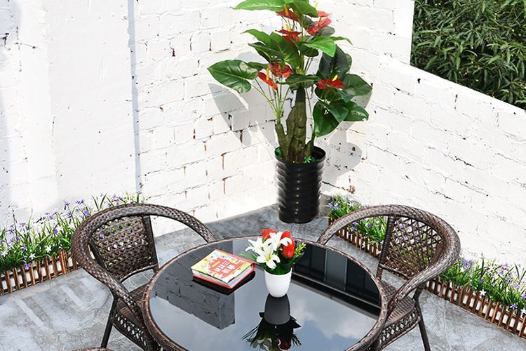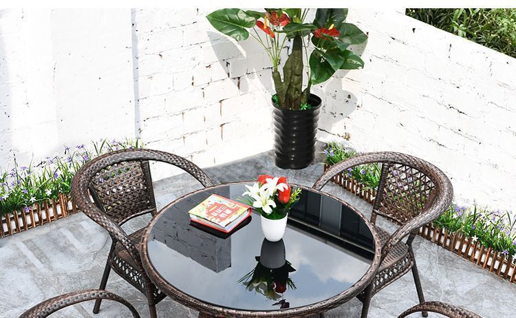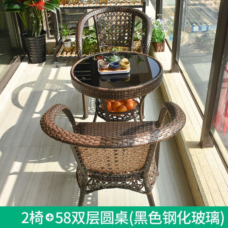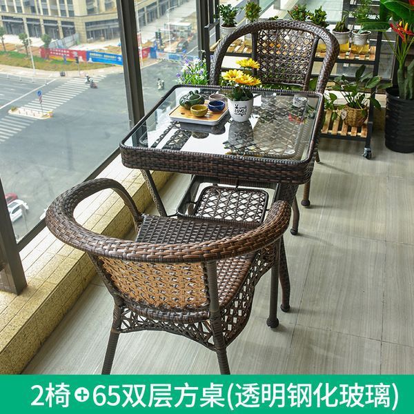 야외 테이블과 의자 안뜰 발코니 레저 등나무 의자 3 피스 세트 테라스 야외 등나무 의자 등나무 의자 작은 커피 테이블 조합스토어 가기