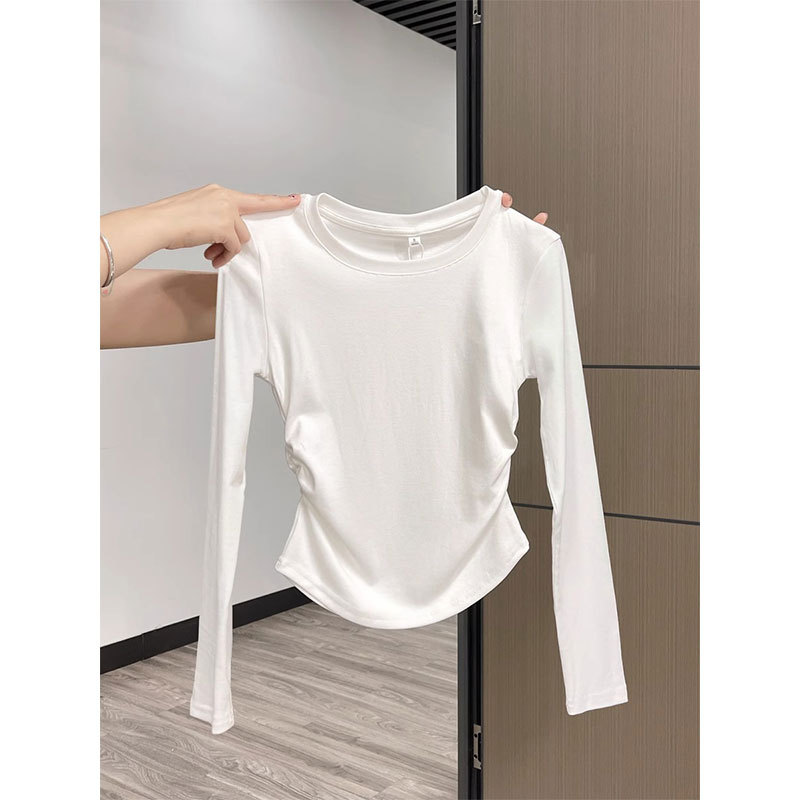 여성용 솔리드 컬러 라운드 넥 긴팔 오른쪽 어깨 바닥 셔츠 탑 봄, 가을 슬림 핫 소녀 착용 짧은 캐주얼 이너 티셔츠스토어 가기