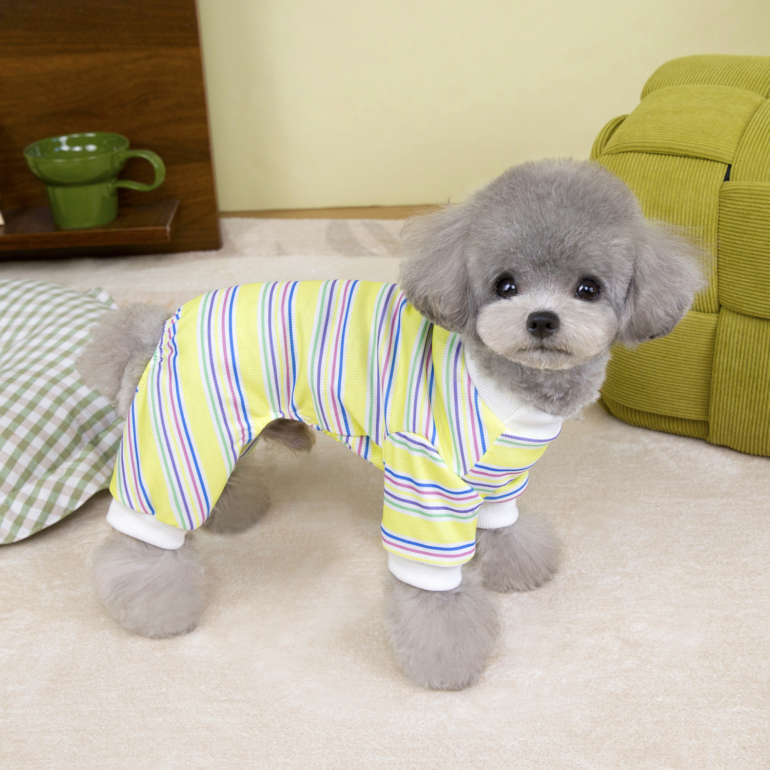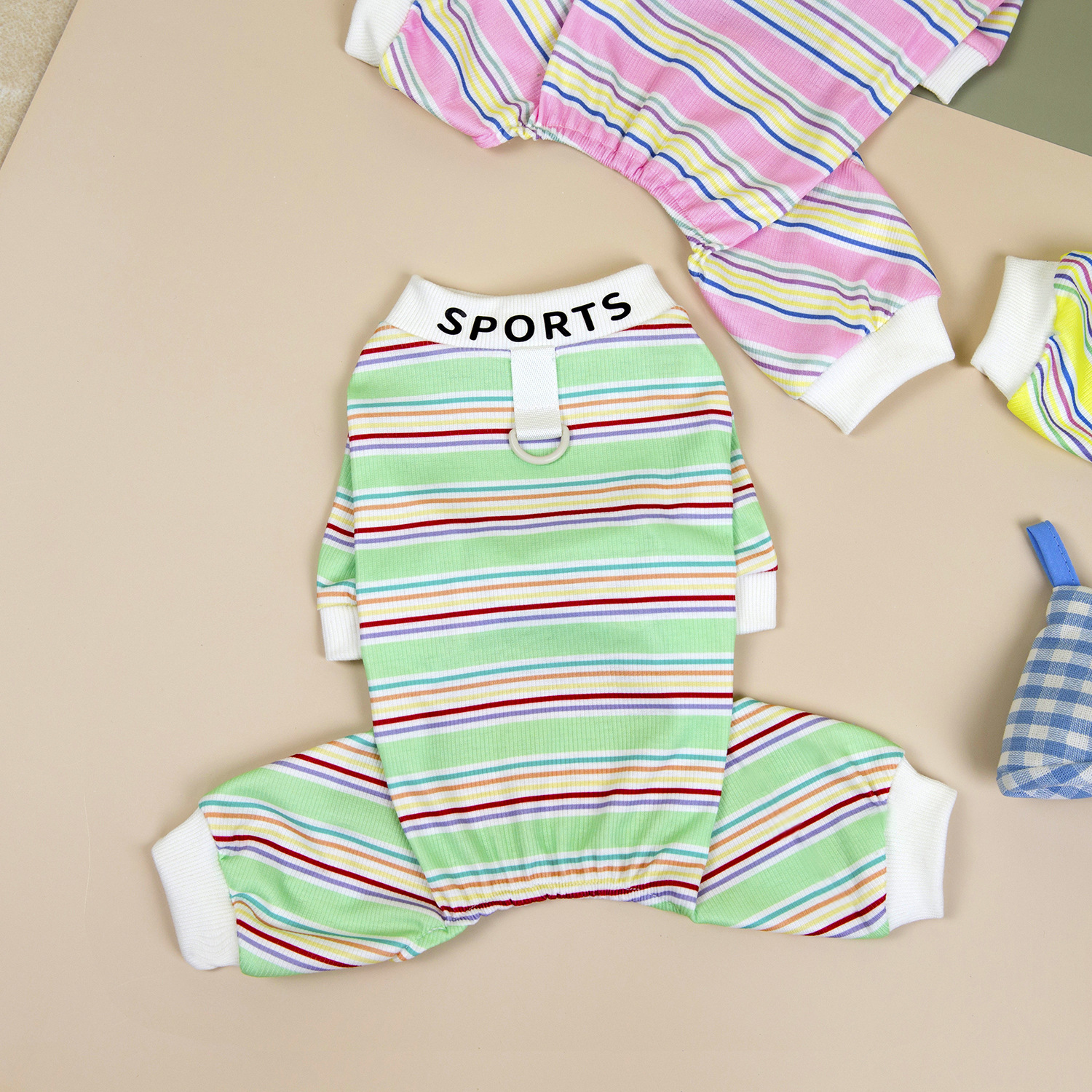 소스 공장 25 봄과 여름 줄무늬 애완 동물 네 다리 바지 얇은 가정 옷 고양이 테디 베어 애완 동물 옷스토어 가기