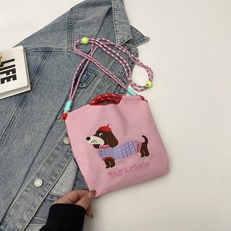 일본 크로스 바디 백 귀여운 만화 컬러 대비 자수 환경 보호 가방 원래 디자인 나일론 울트라 라이트 핸드 백 크로스 테두리 천 가방스토어 가기