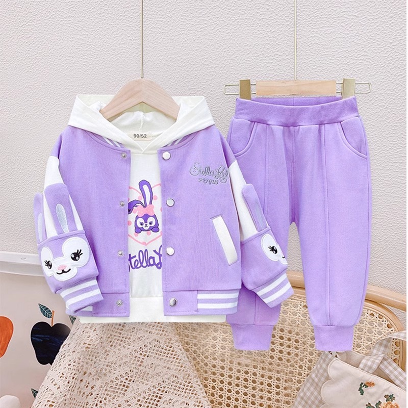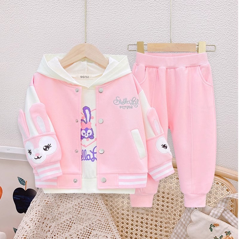 여자 세트 봄 2025 새로운 유행 한국 봄 가을 어린이 착용 어린이 카디건 3 조각 세트