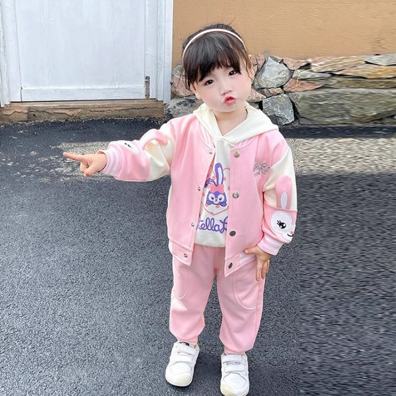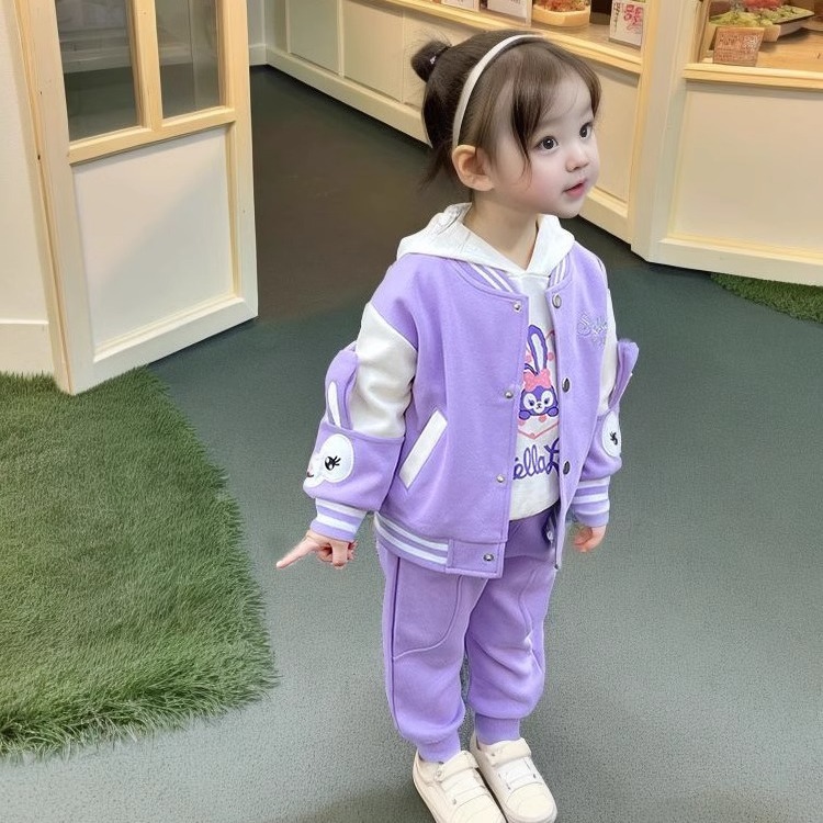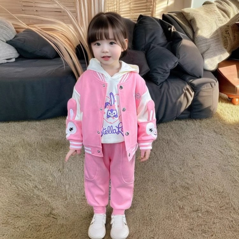 여자 세트 봄 2025 새로운 유행 한국 봄 가을 어린이 착용 어린이 카디건 3 조각 세트스토어 가기