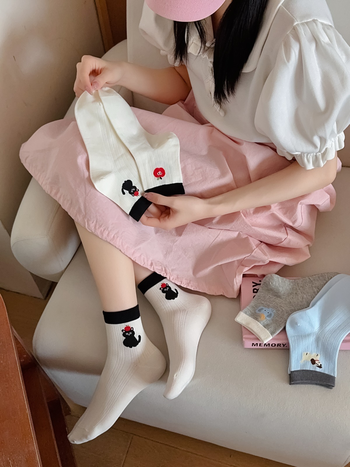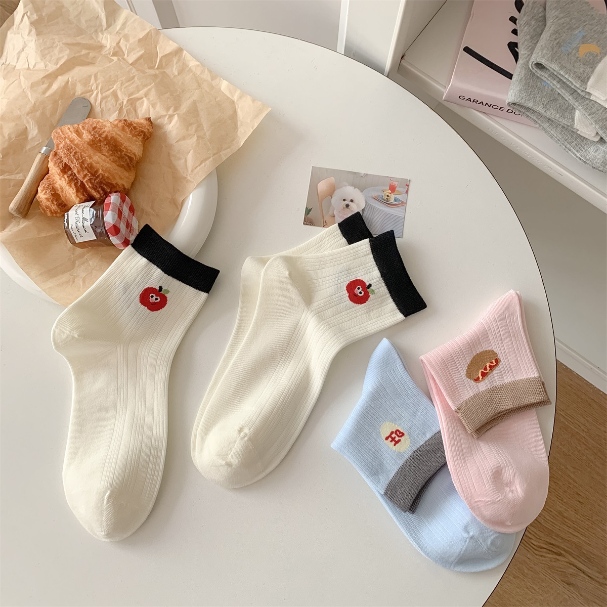 25 봄과 여름 얇은 AB 만화 강아지 짧은 튜브 낮은 양말 여성의면 양말 뼈없는 컬러 매칭 닥스 훈트 개 양말 한국어 버전스토어 가기