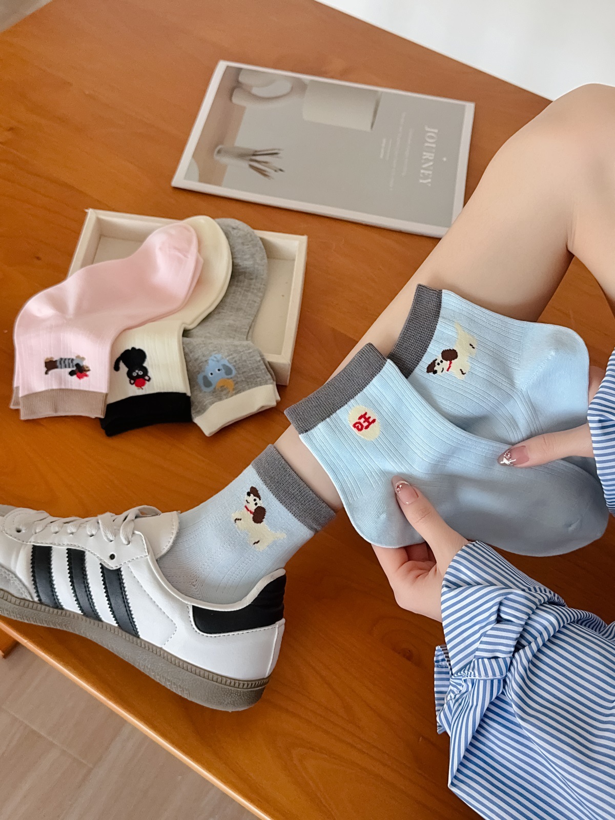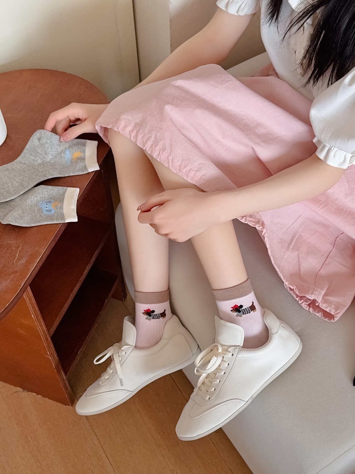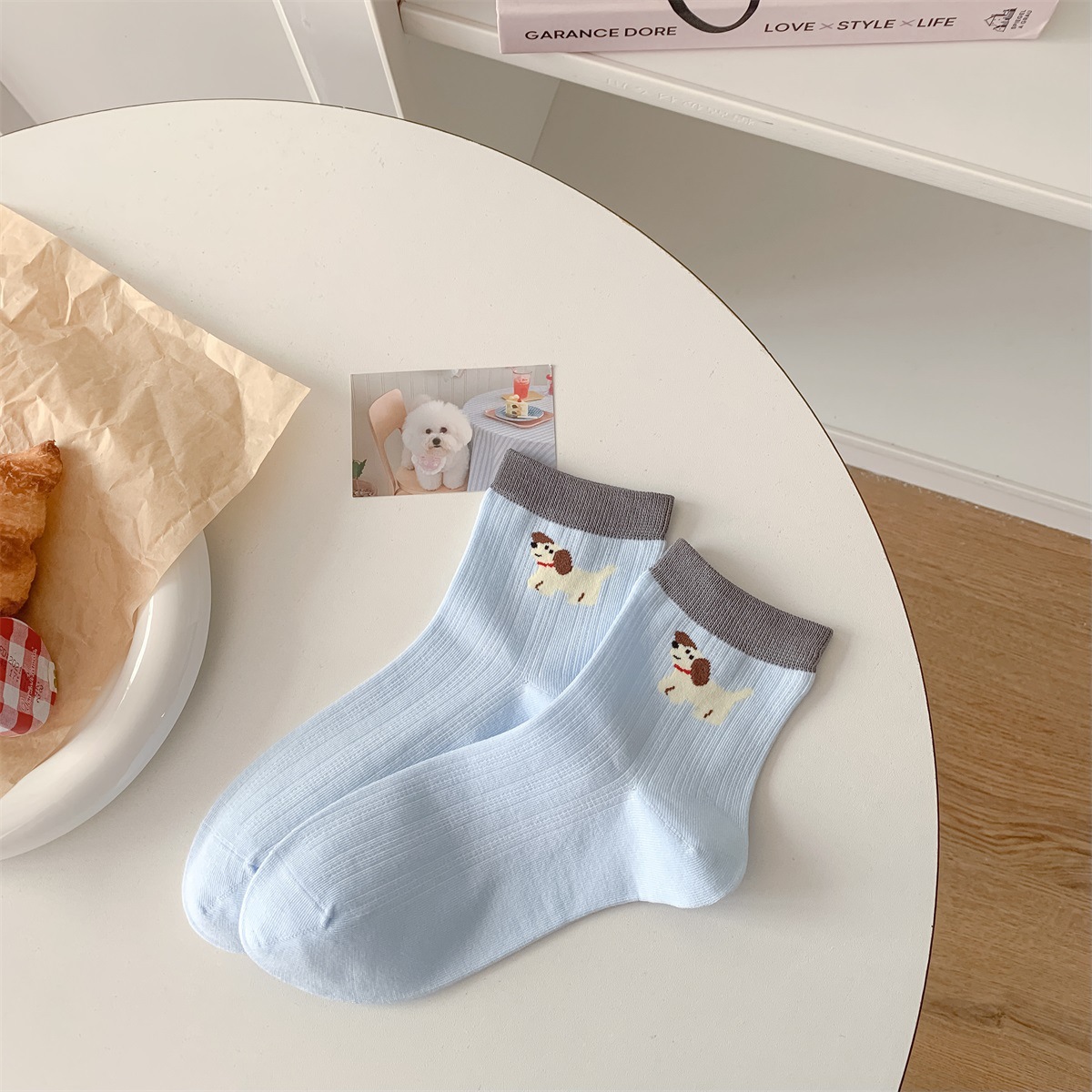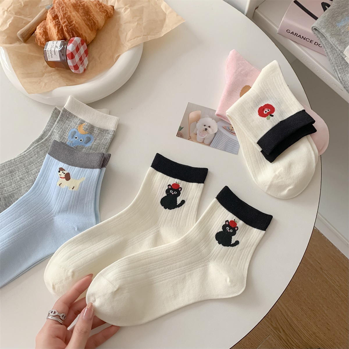 25 봄과 여름 얇은 AB 만화 강아지 짧은 튜브 낮은 양말 여성의면 양말 뼈없는 컬러 매칭 닥스 훈트 개 양말 한국어 버전