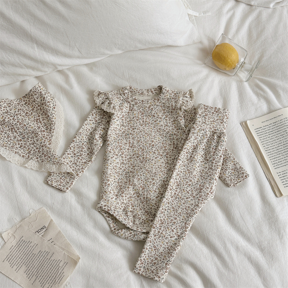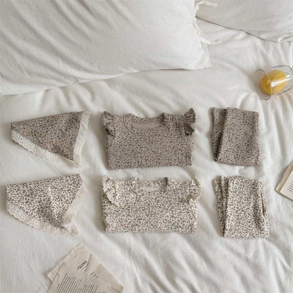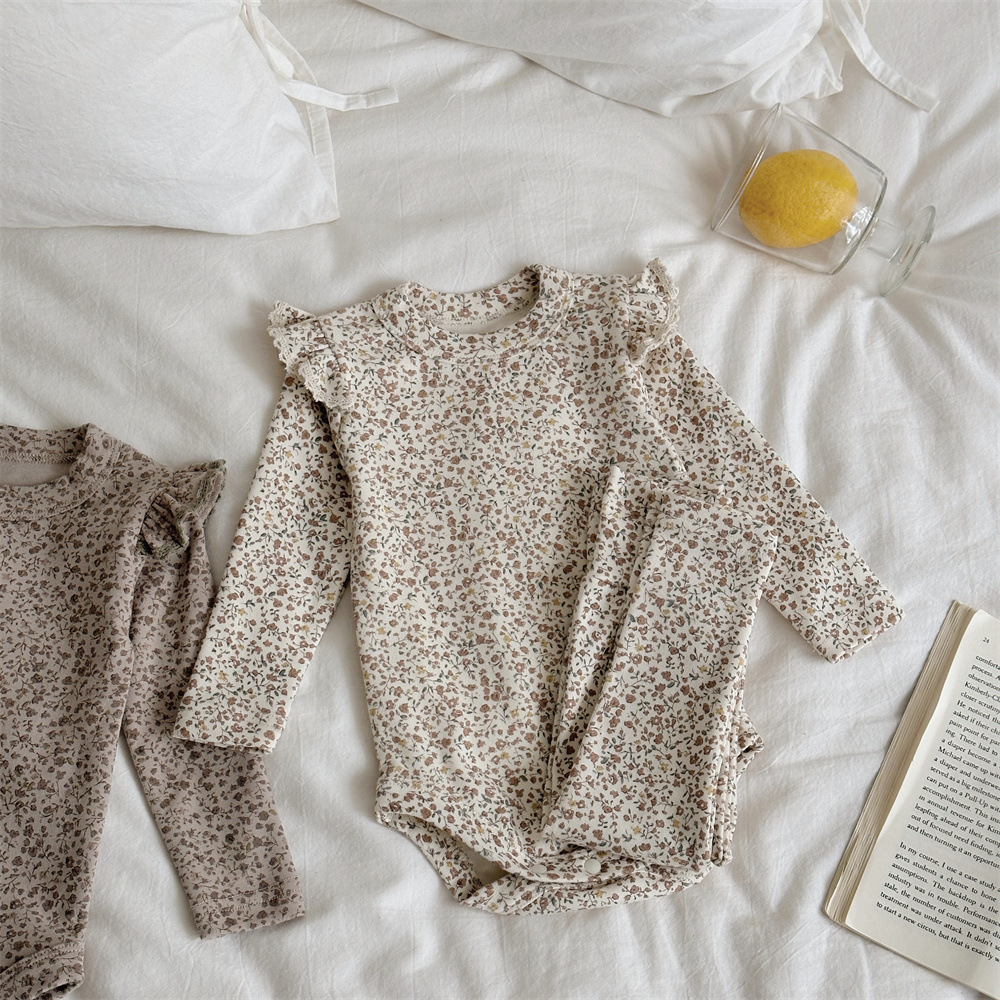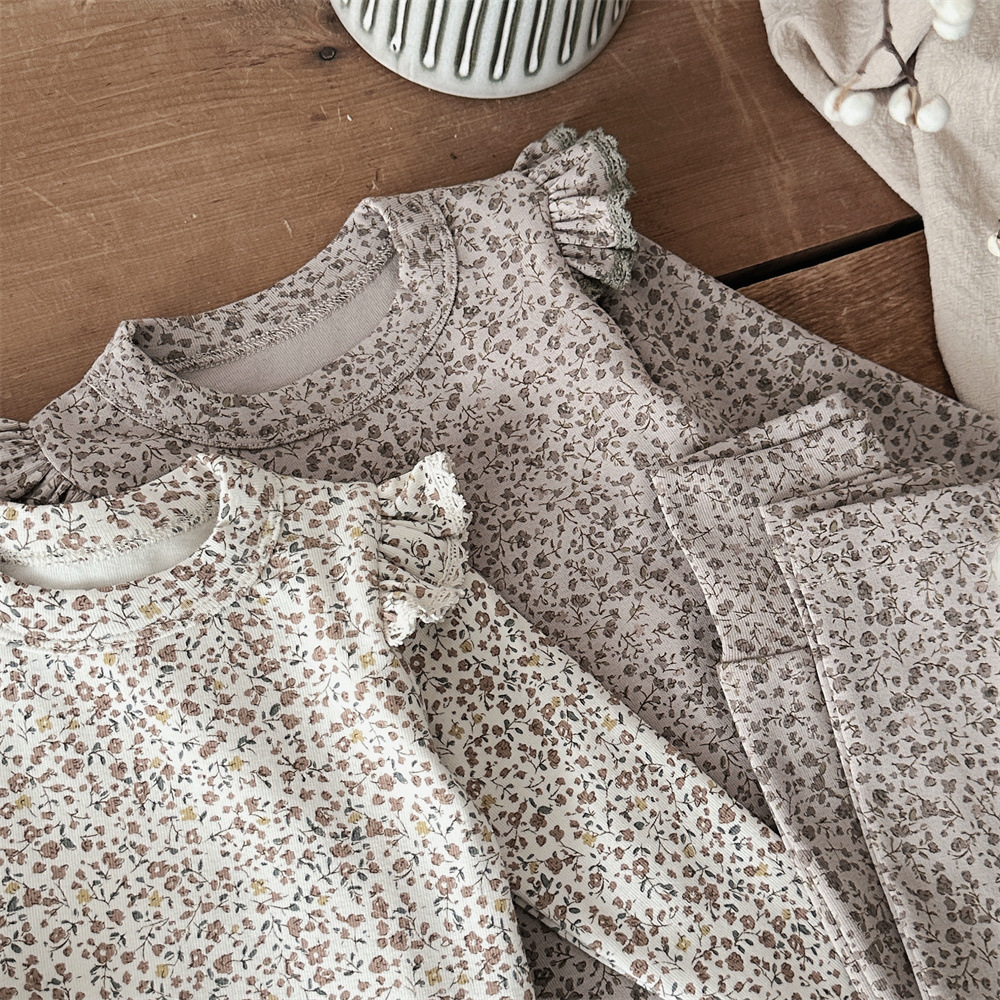 INS 가을과 겨울 유아 풀 프린트 플라워 플라워 슬리브 토끼 높은 허리 바지 여성용 홈 세트스토어 가기
