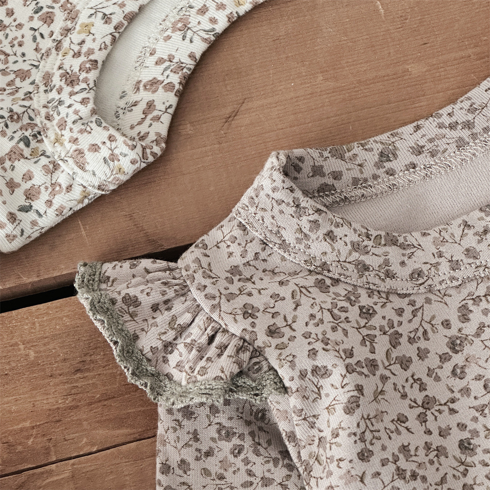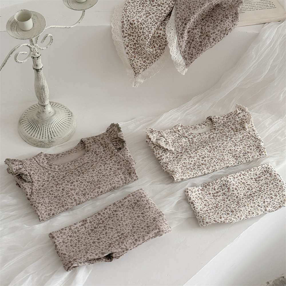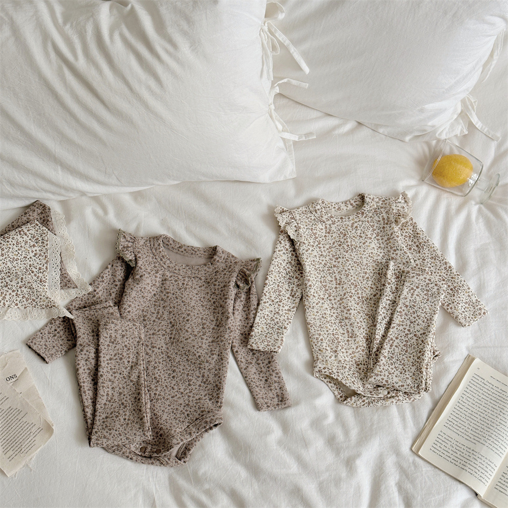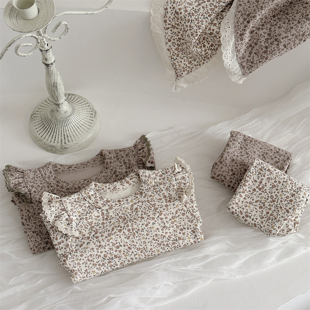 INS 가을과 겨울 유아 풀 프린트 플라워 플라워 슬리브 토끼 높은 허리 바지 여성용 홈 세트스토어 가기