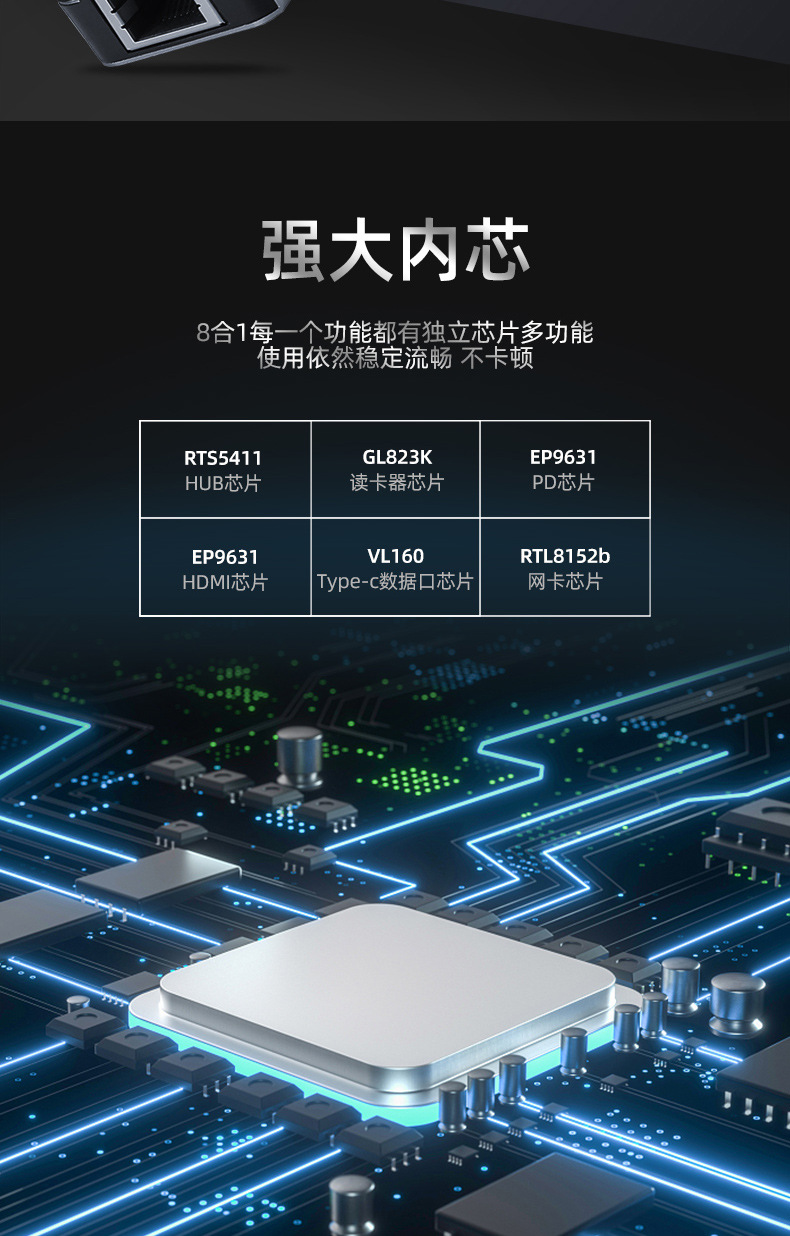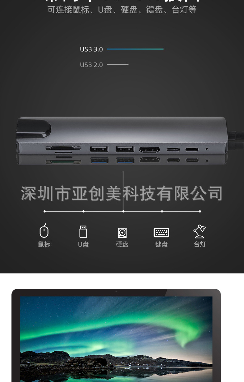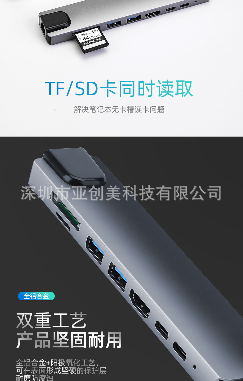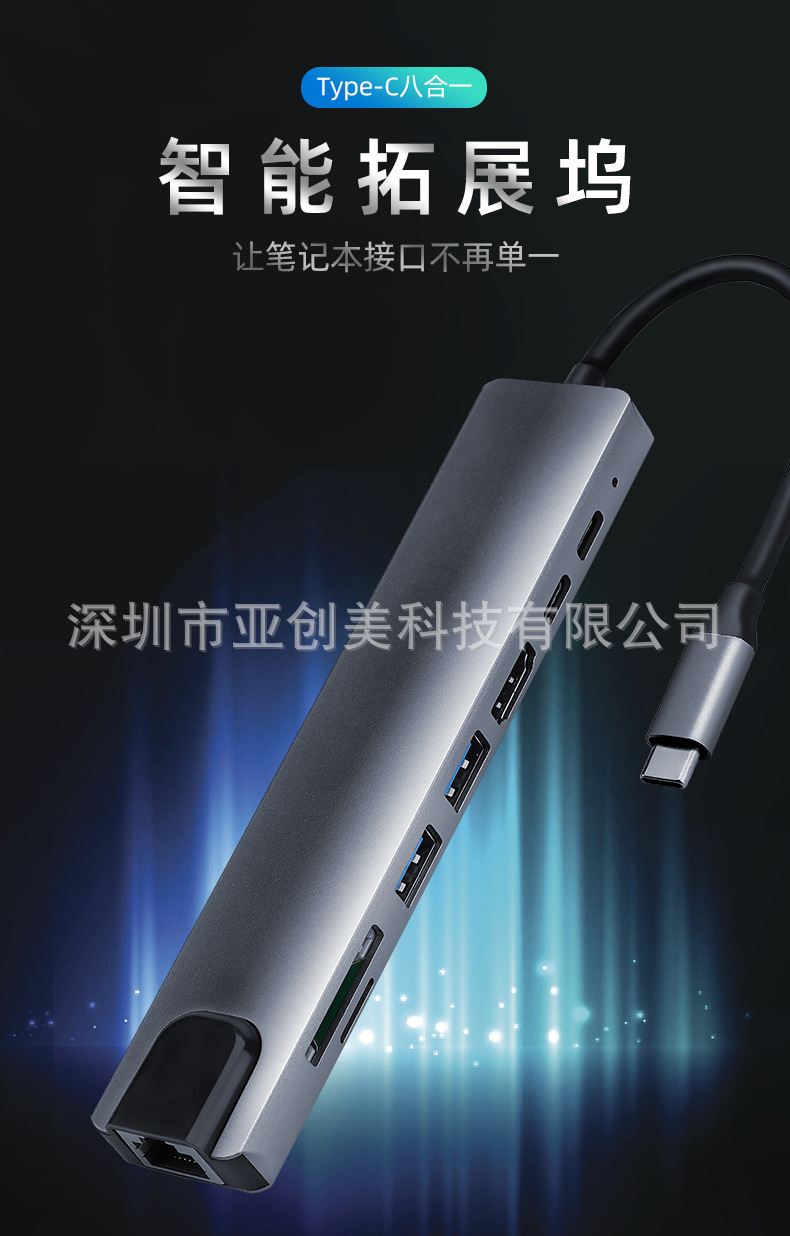 유형 c 8 대 1 도킹 스테이션 PD100W 다기능 스플리터 확장 도크 컨버터 USB3.0HDMI