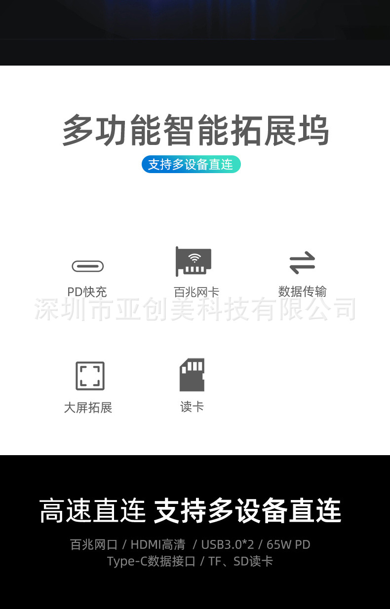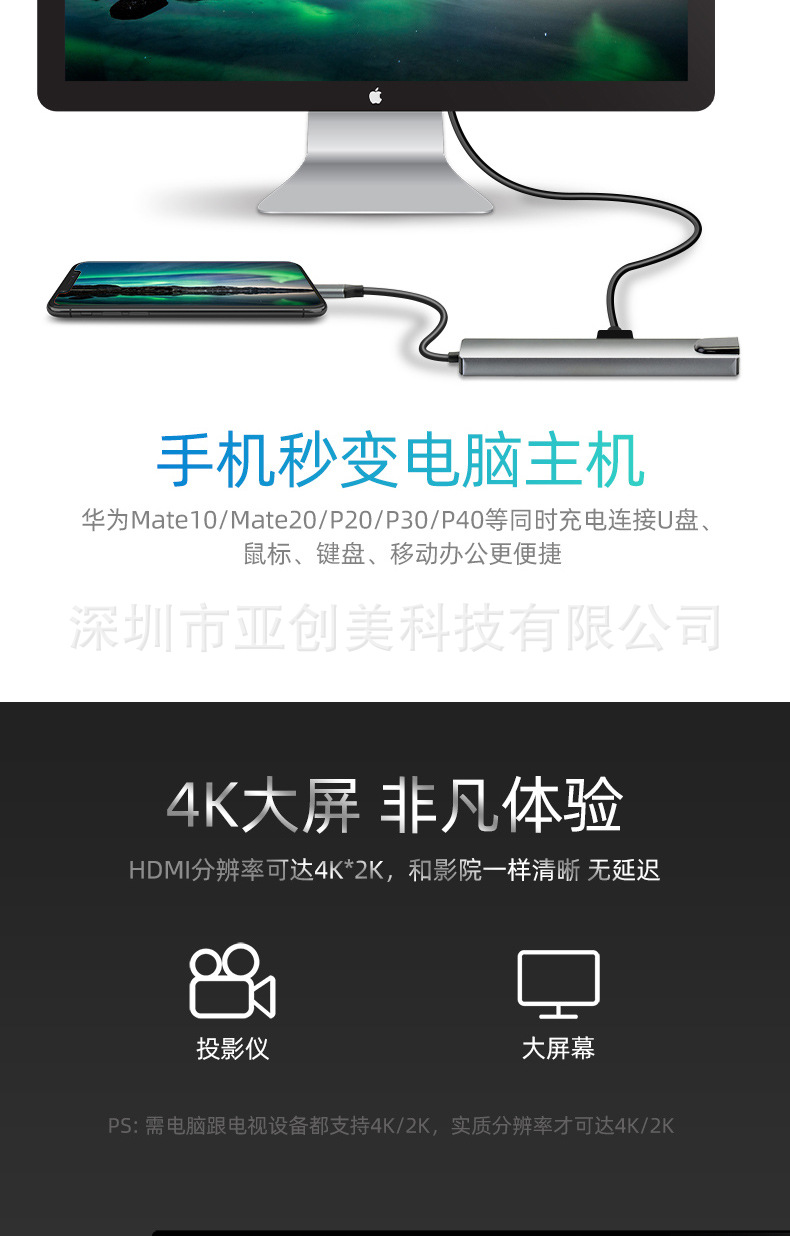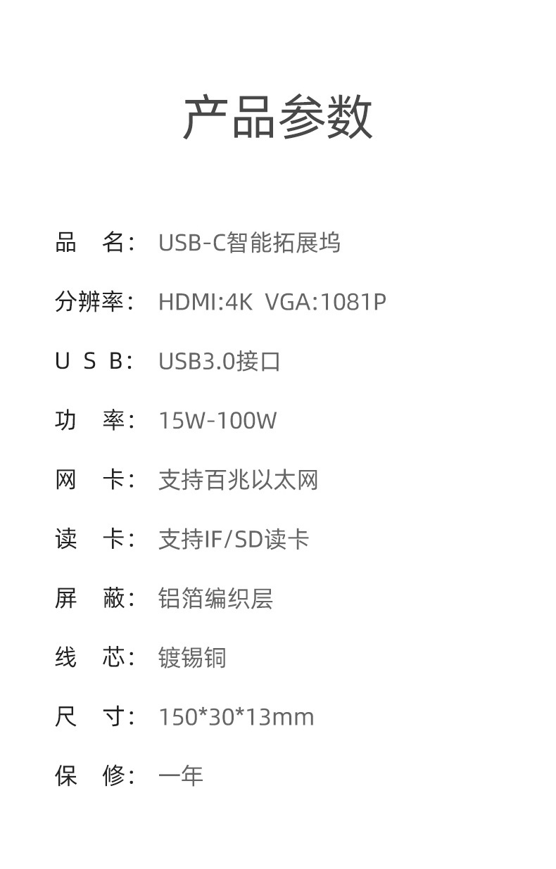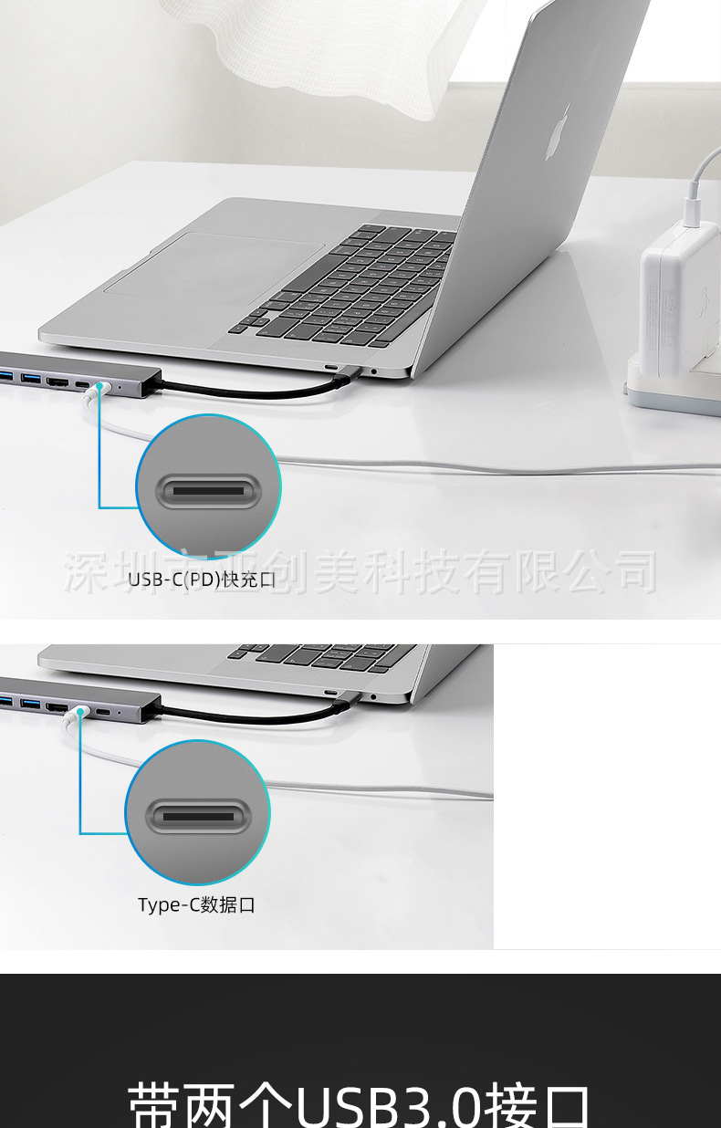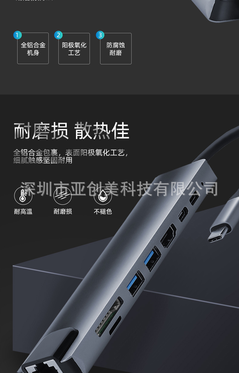 유형 c 8 대 1 도킹 스테이션 PD100W 다기능 스플리터 확장 도크 컨버터 USB3.0HDMI