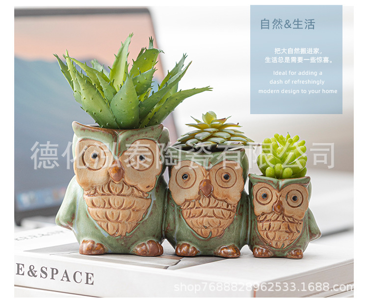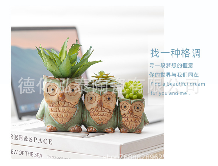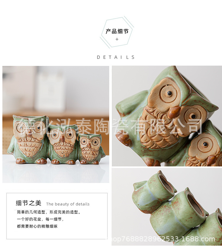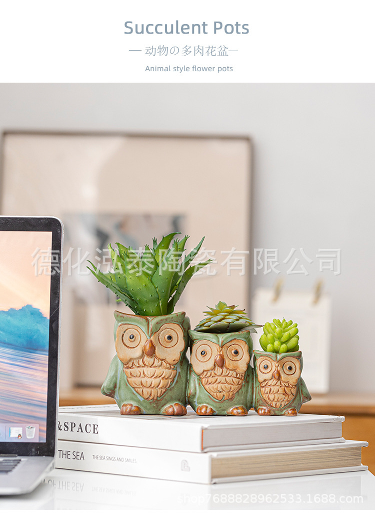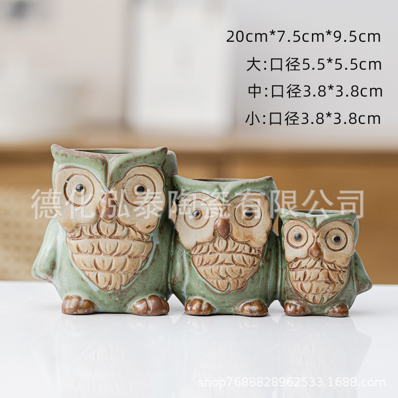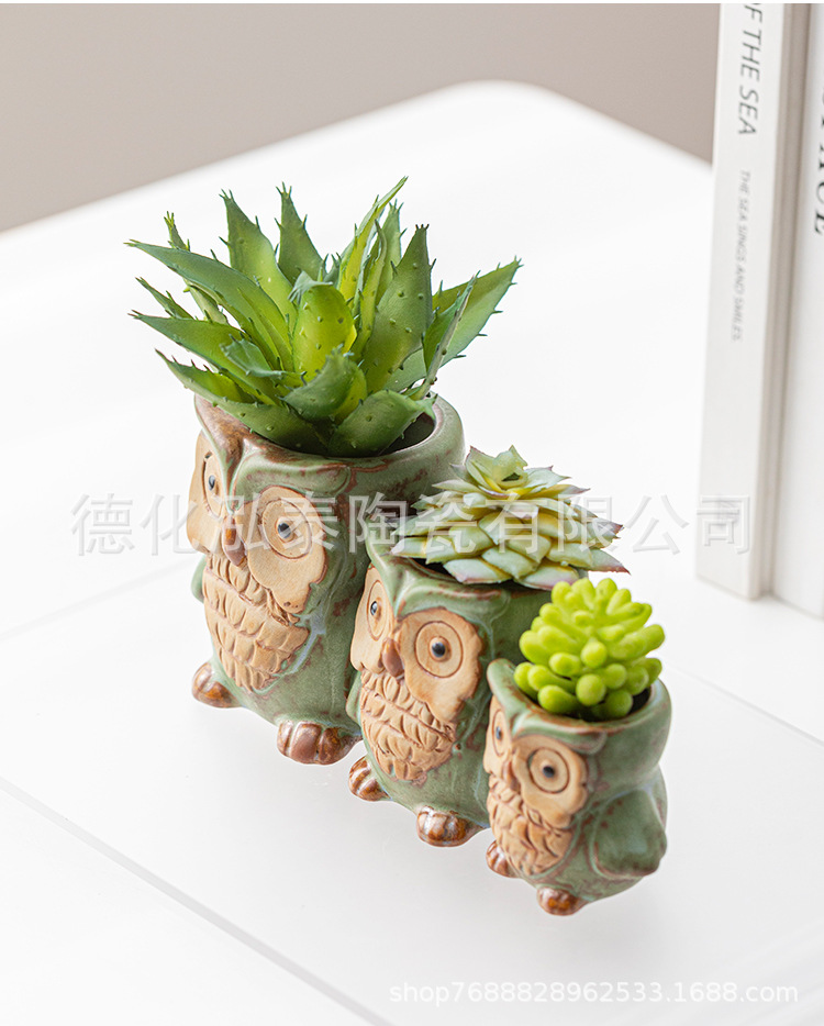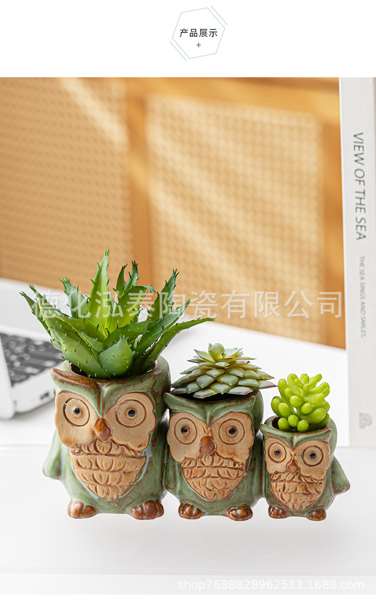 유럽과 미국의 국경 간 창조적 인 결합 된 올빼미 세라믹 다육 질 꽃 냄비 가마 펜 홀더 꽃 홈 장식 장식품스토어 가기