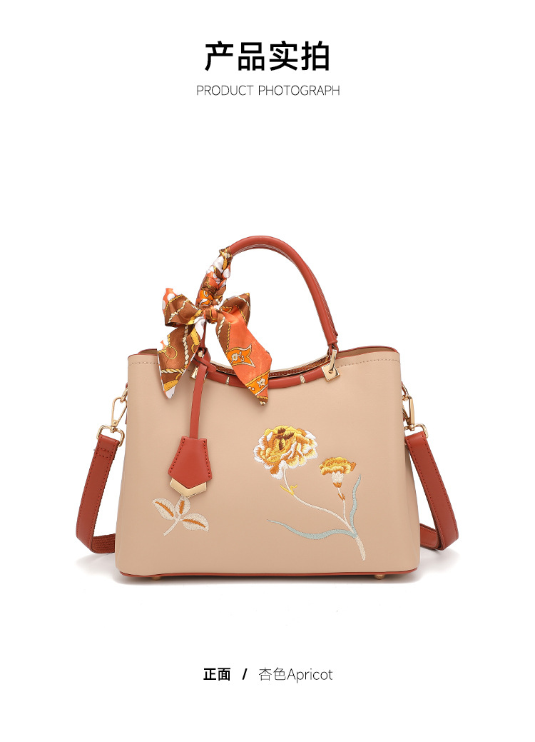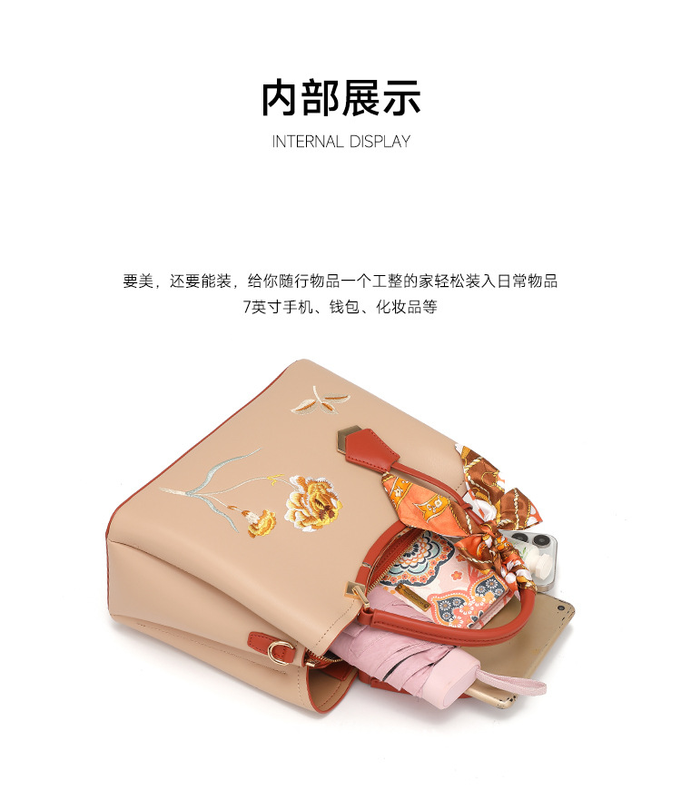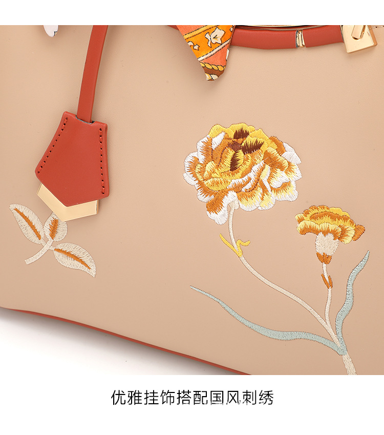 2025 패션 가방 휴대용 어깨 크로스 바디 백 새로운 중국 스타일 수 자수 카네이션 고급 살구색 다크 브라운 어머니 가방 시어머니스토어 가기