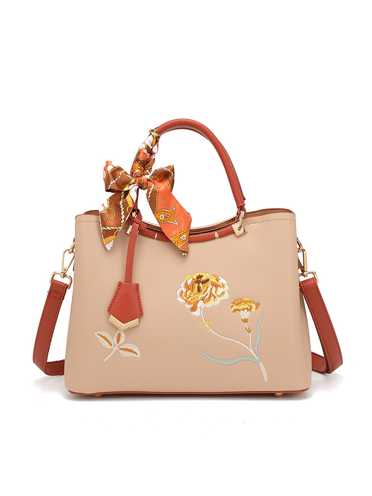 2025 패션 가방 휴대용 어깨 크로스 바디 백 새로운 중국 스타일 수 자수 카네이션 고급 살구색 다크 브라운 어머니 가방 시어머니