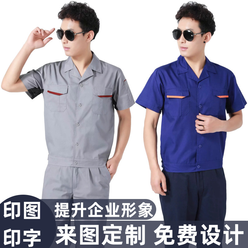 여름 바지 반팔 세트 폴리 에스테르 면화 내마모성 작업장 공장 의류 자동차 수리 전기 기계 노동 보호 의류 맞춤형 자수 로고스토어 가기