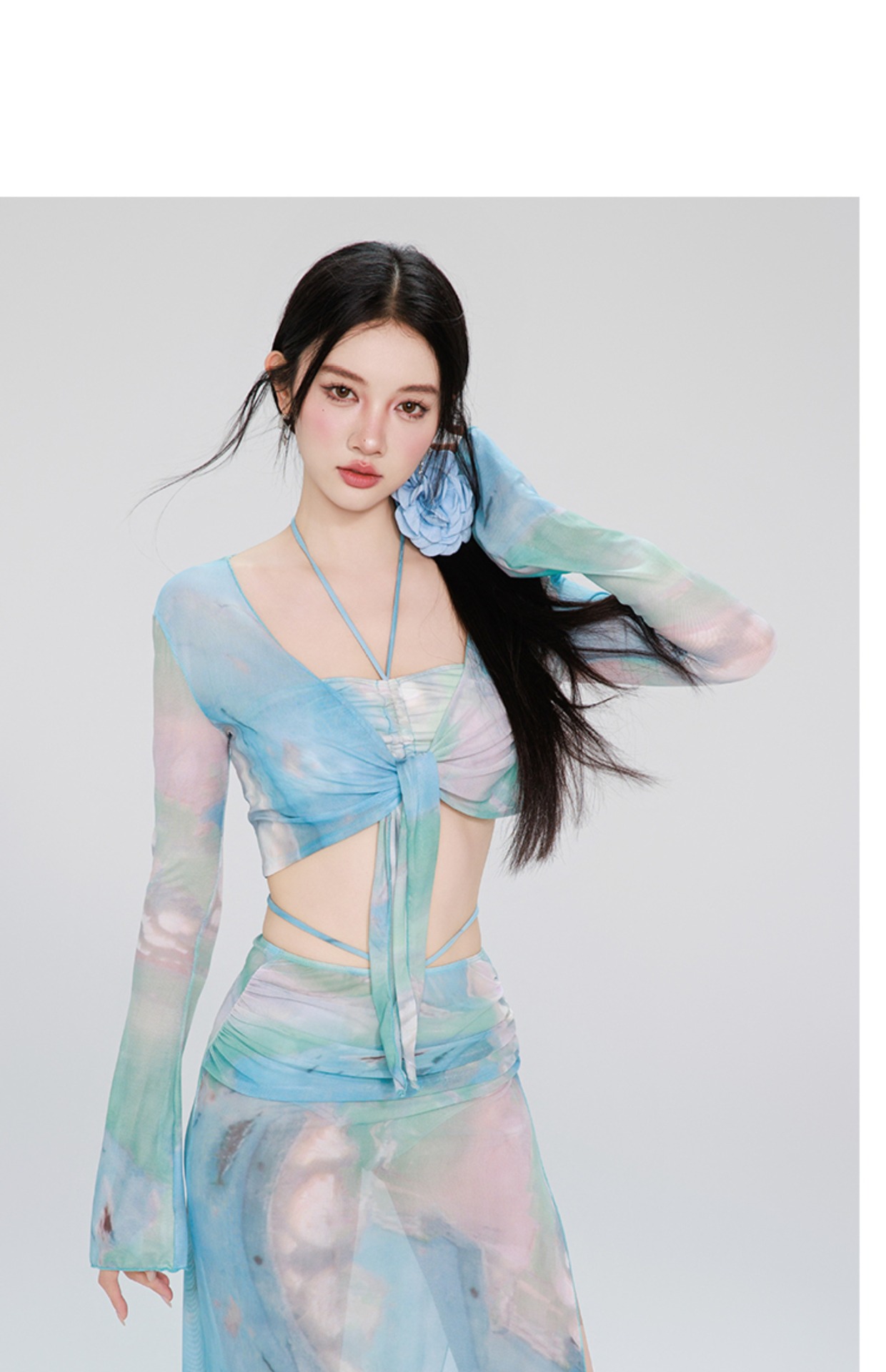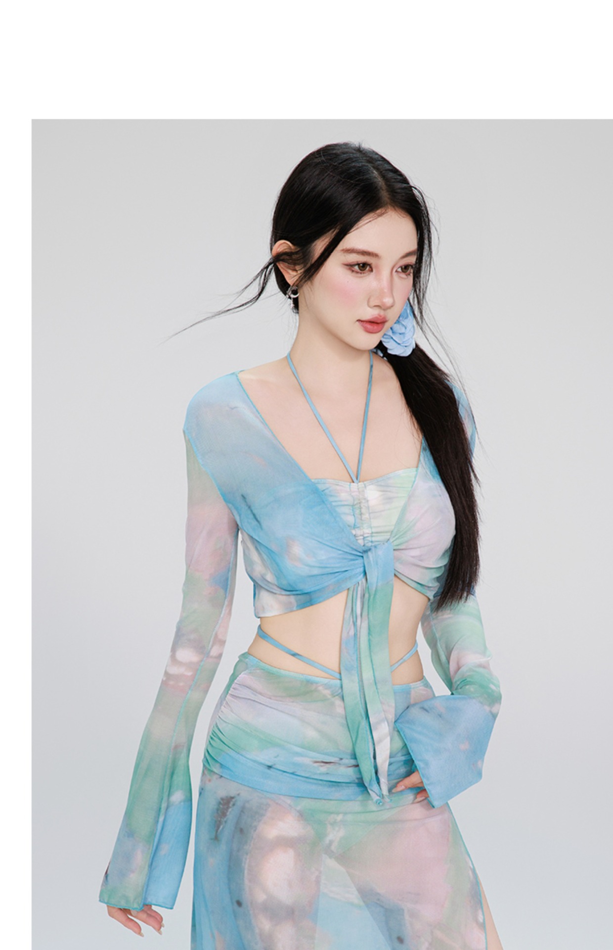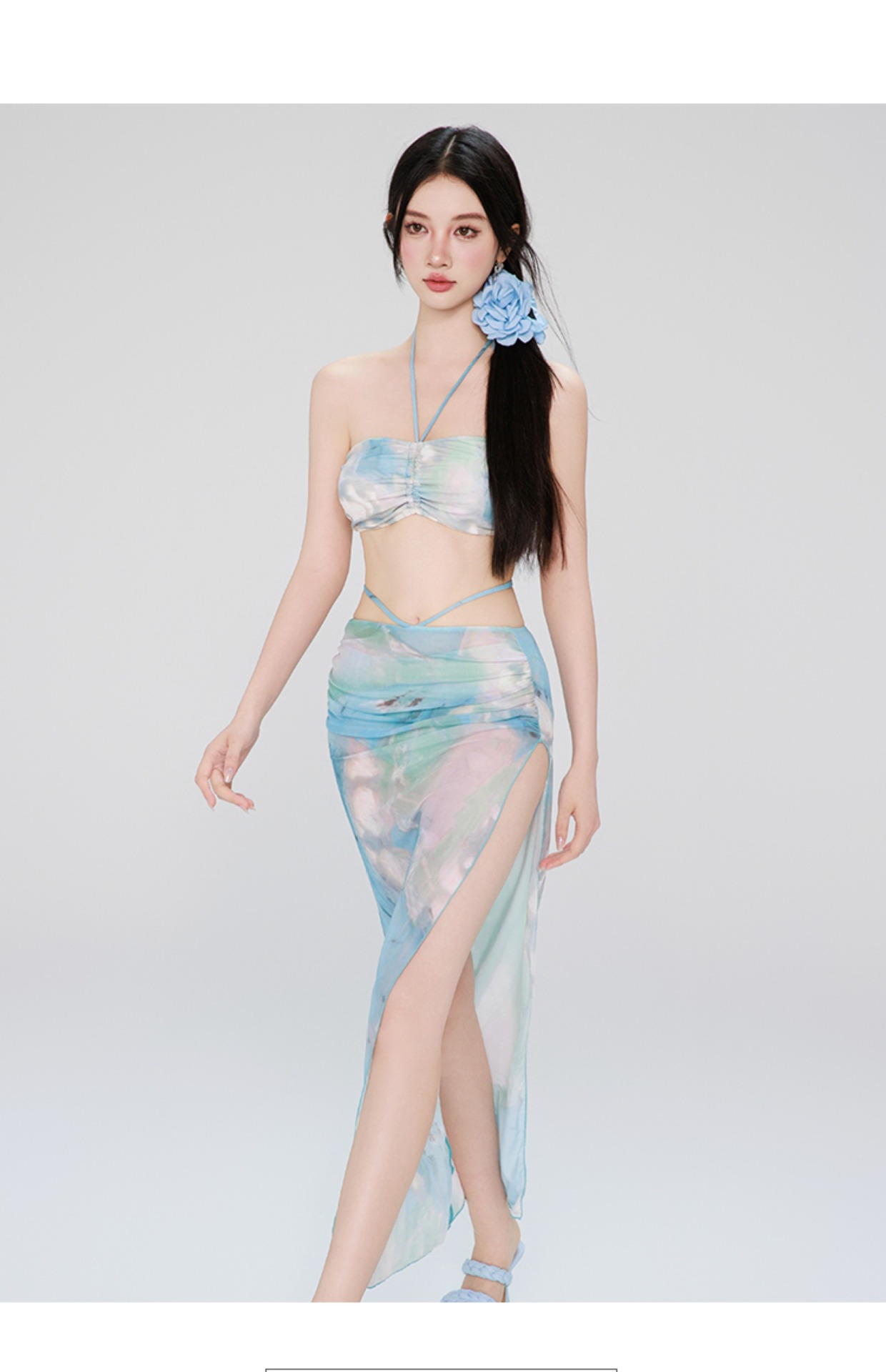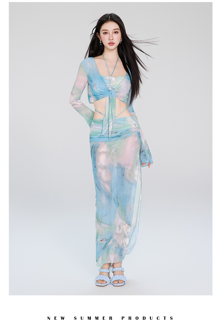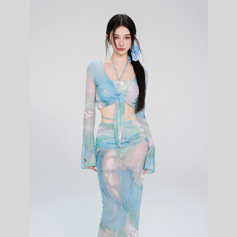 여성용 수영복 비키니 4피스 세트 긴 소매 긴 치마 섹시한 순수한 매력 고급스러운 2026 신상 수영복