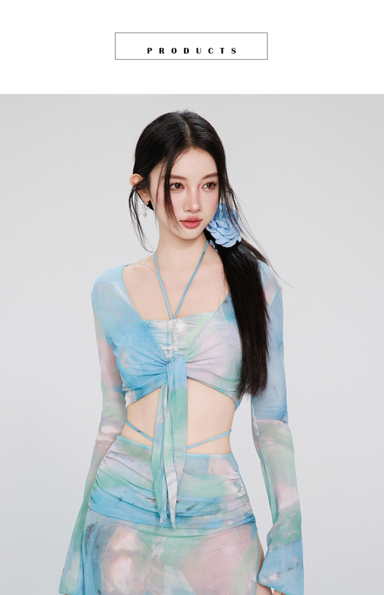 여성용 수영복 비키니 4피스 세트 긴 소매 긴 치마 섹시한 순수한 매력 고급스러운 2026 신상 수영복스토어 가기