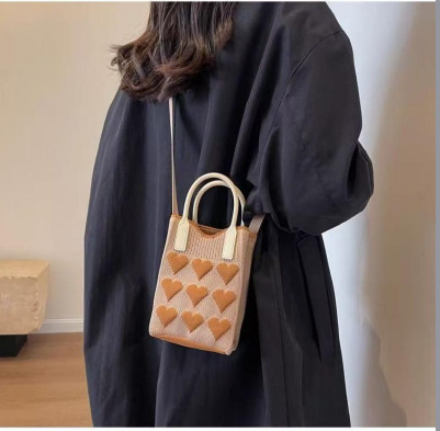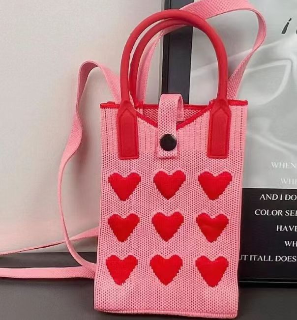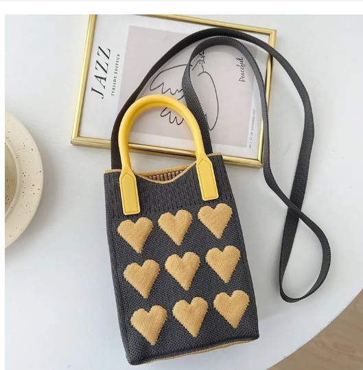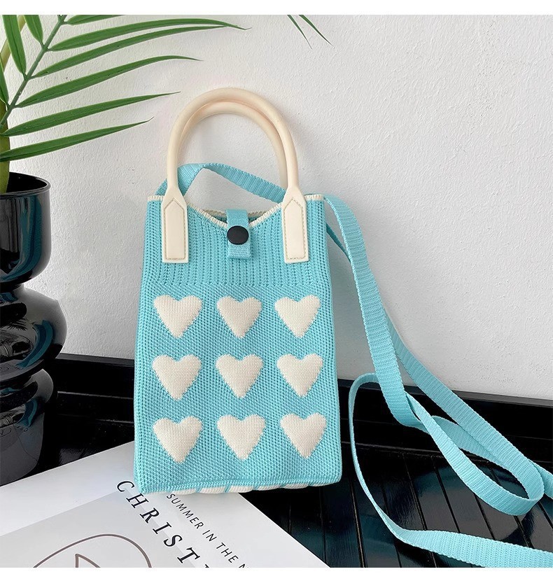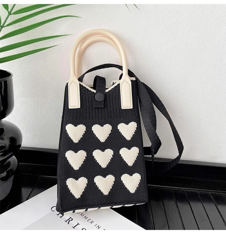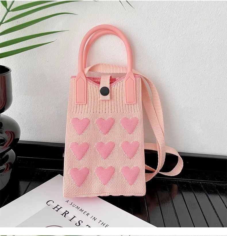 실리콘 스트랩 휴대폰 가방, 하트 패턴 니트, 달콤한 핸드백, 크로스백, 다용도 학생용 동전 지갑, 수출용스토어 가기