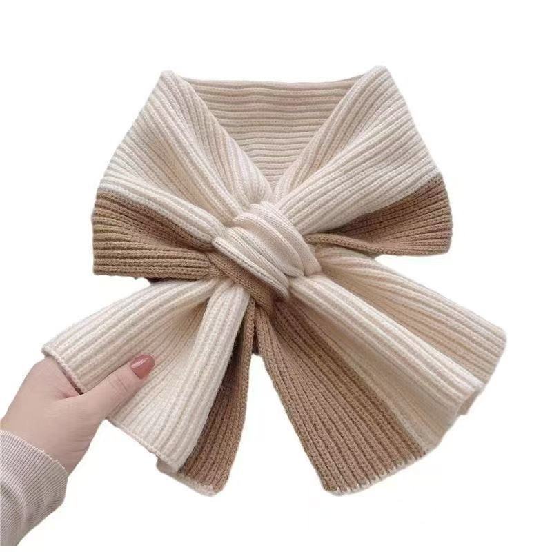 2025 게으른 스타일 스카프 여자 가을 겨울 한국 스타일 올매치 니트 따뜻한 크로스 컬러 일치 겨울 작은 스카프 목 보호