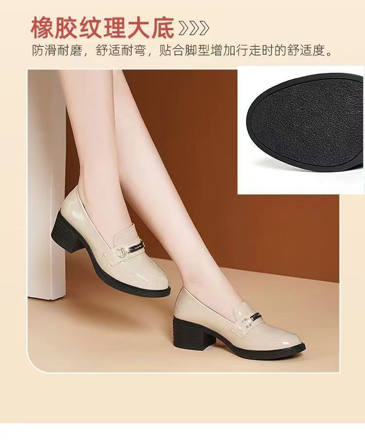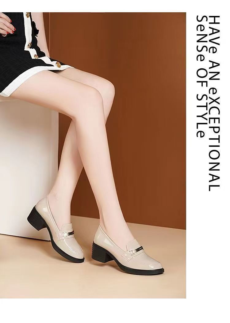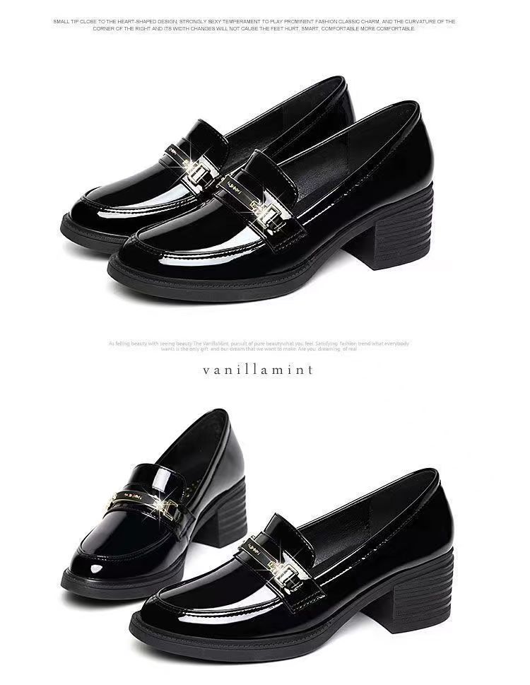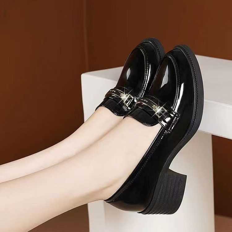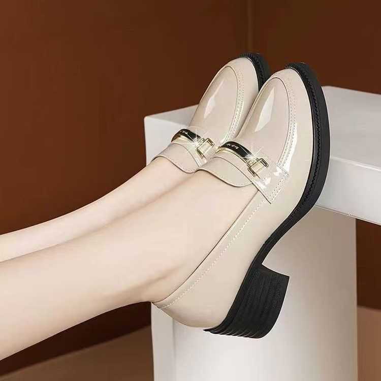 미드 힐 로퍼 여성 가죽 신발 새로운 여성 신발 가을 여성 신발 소프트 솔 샤넬 스타일 두꺼운 힐 라운드 발가락 패션 캐주얼스토어 가기
