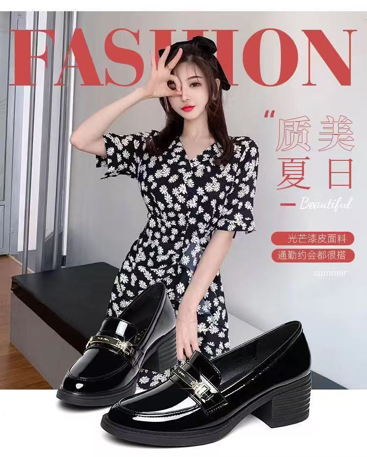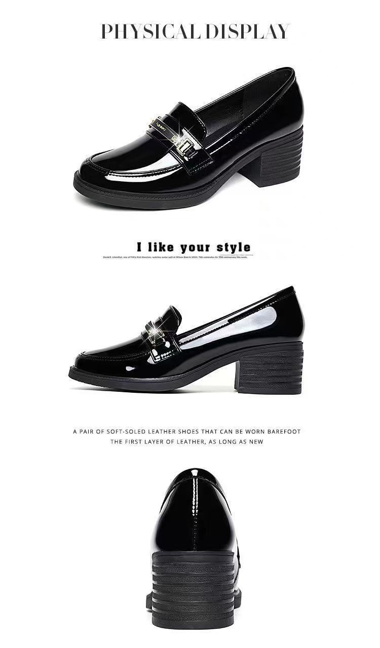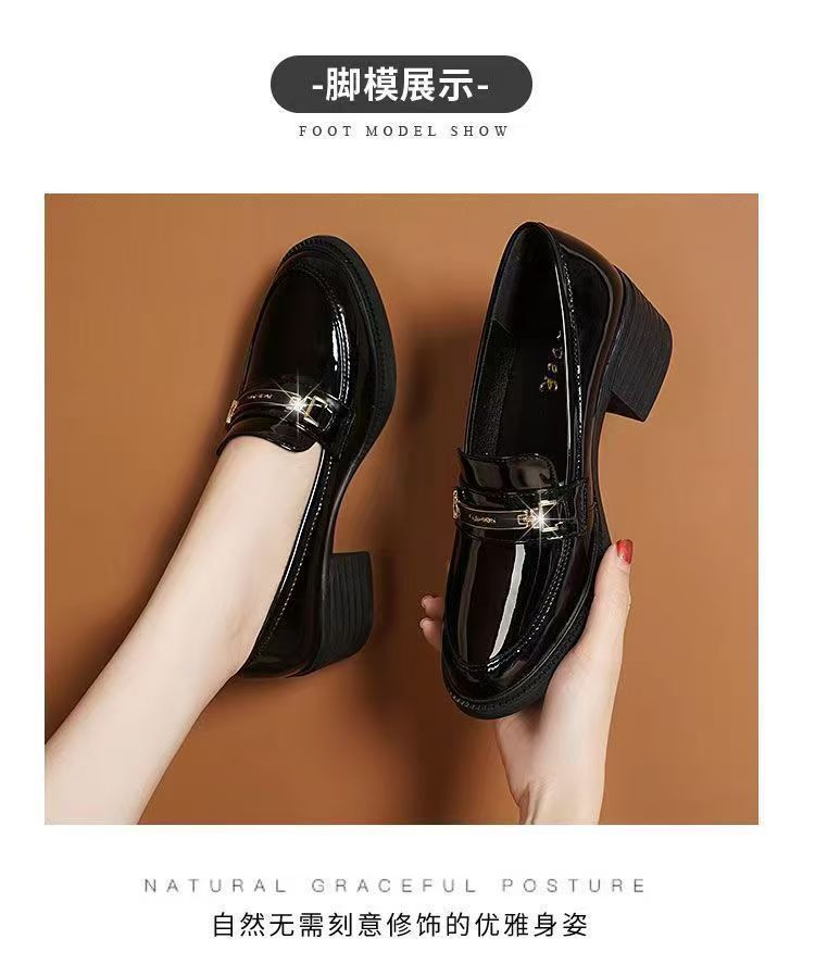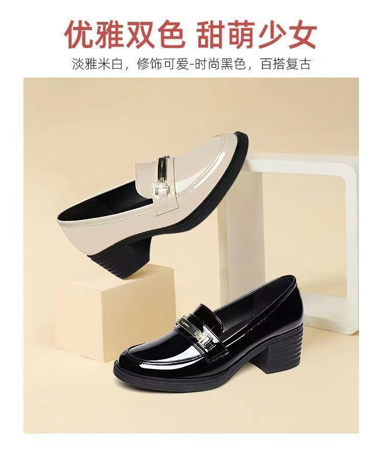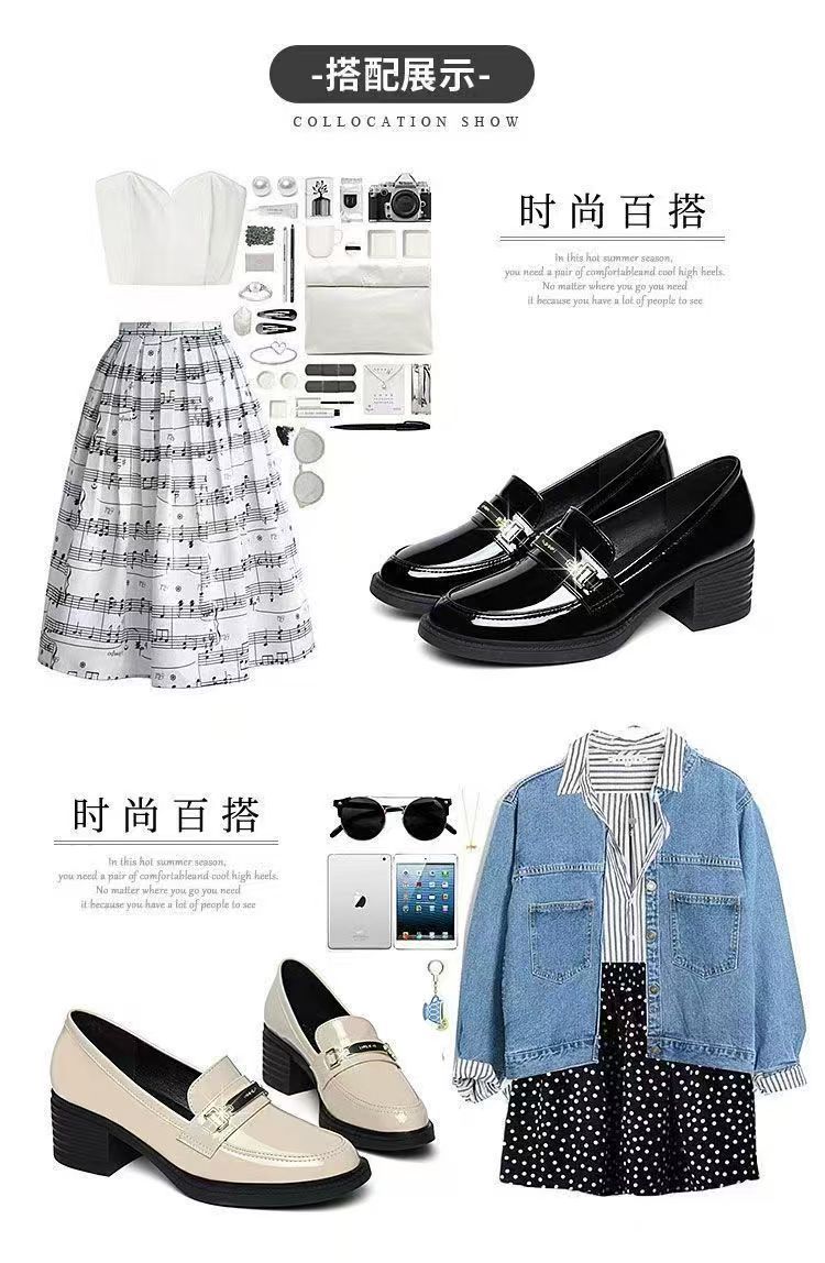 미드 힐 로퍼 여성 가죽 신발 새로운 여성 신발 가을 여성 신발 소프트 솔 샤넬 스타일 두꺼운 힐 라운드 발가락 패션 캐주얼스토어 가기