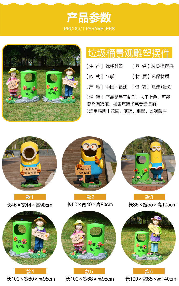 야외 만화 꽃밭 캐릭터 쓰레기통 조각 정원 명승지 유치원 장식 유리 섬유 강화 플라스틱 아름다운 첸 장식품