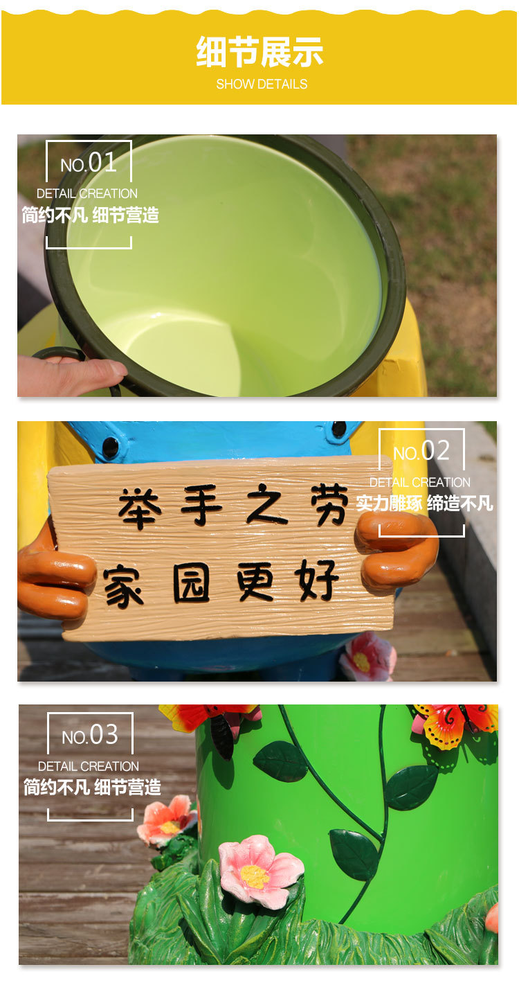 야외 만화 꽃밭 캐릭터 쓰레기통 조각 정원 명승지 유치원 장식 유리 섬유 강화 플라스틱 아름다운 첸 장식품스토어 가기