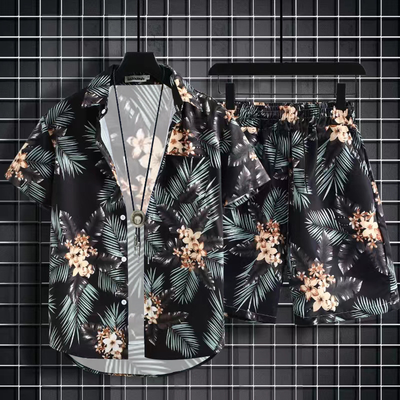 3 피스 비치 세트 남자 올 매치 퀵 건조 반바지 하이난 아일랜드 빈티지 국립 유행 꽃 셔츠 커플 클래스 옷스토어 가기