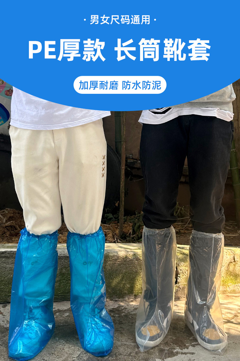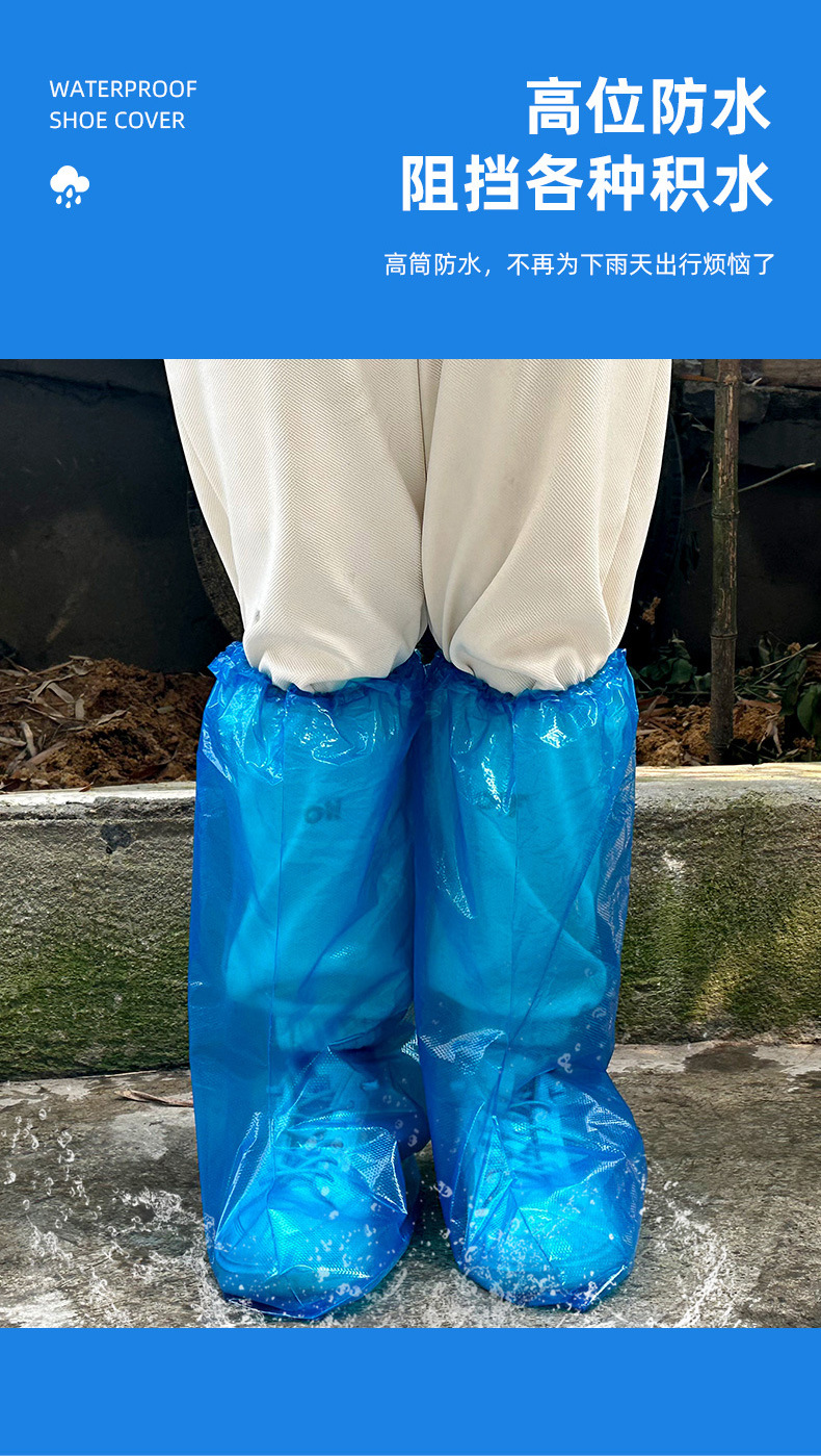 일회용 방수 신발 커버 비오는 날 비방비 미끄럼 방지 발 커버 외부 착용 플라스틱 두꺼운 내마모성 장화 높은 배럴 비 부츠