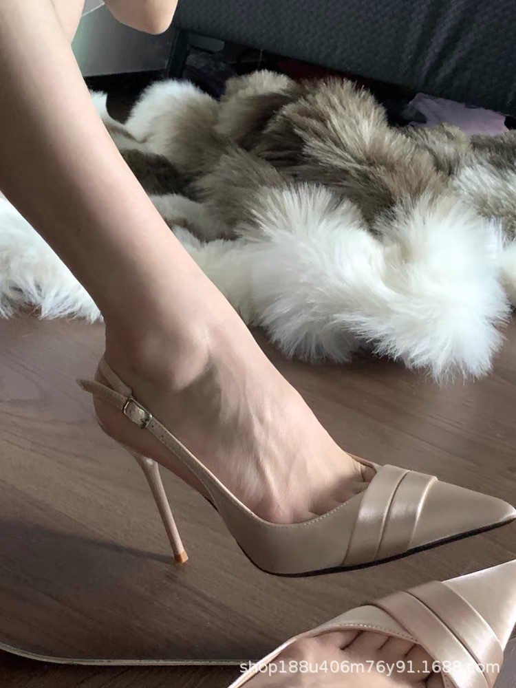 2025 새로운 스타일 Baotou 샌들 여성용 샴페인 스틸레토 힐은 하이힐을 가진 프랑스 우아한 하이힐을 아름답게 가리 켰습니다.스토어 가기