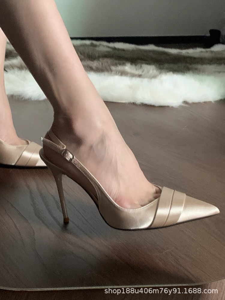 2025 새로운 스타일 Baotou 샌들 여성용 샴페인 스틸레토 힐은 하이힐을 가진 프랑스 우아한 하이힐을 아름답게 가리 켰습니다.