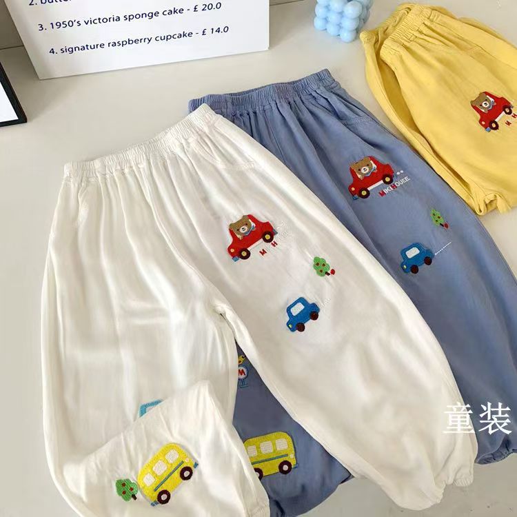 어린이 여름 모기 방지 바지 일본 새 소년 바지 쿨 얇은 얼음 실크면 바지 만화 아기의 블루머스토어 가기