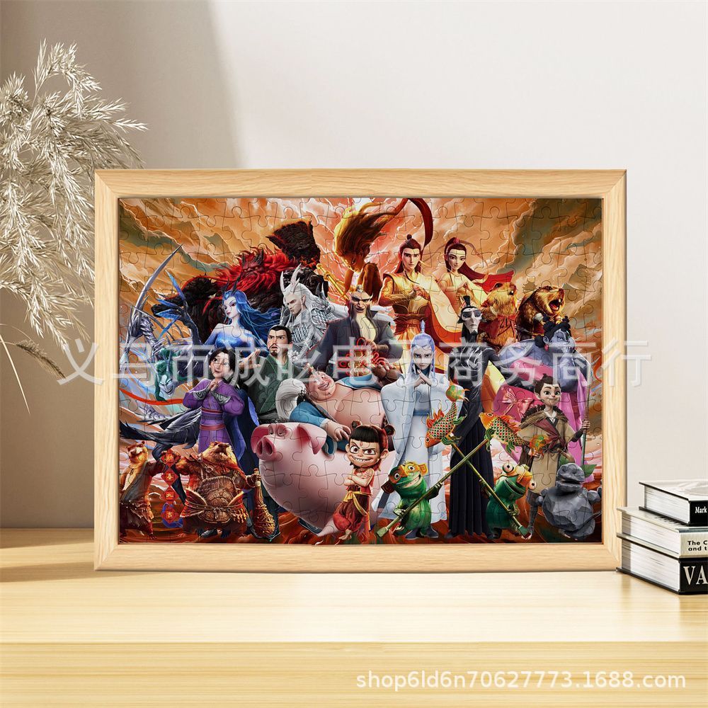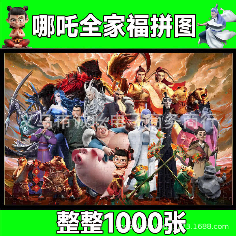 Guoman Nezha 가족 사진 퍼즐 1000 어린이 교육 장난감 중국 스타일 DIY 수제 선물스토어 가기