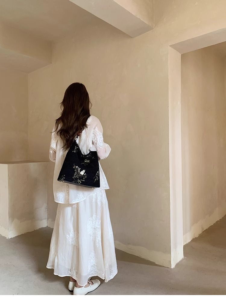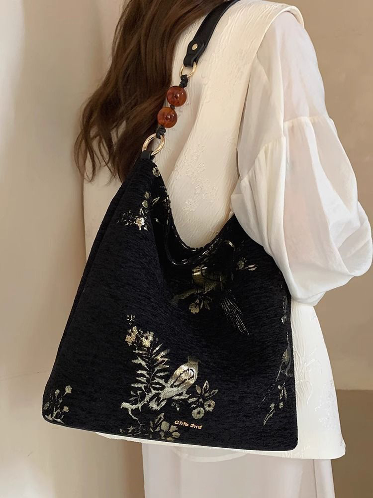 2025 새로운 중국 스타일 국가 스타일 가방 여성 대용량 여름 통근 어깨 언더암 가방 골동품 토트 가방