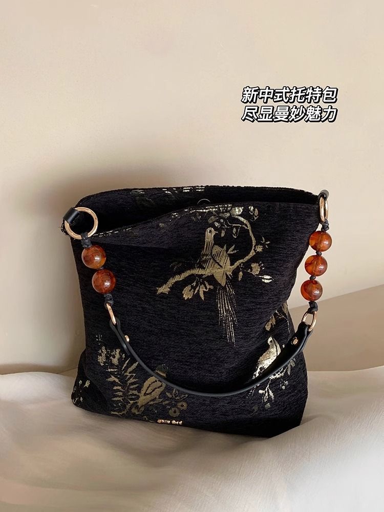 2025 새로운 중국 스타일 국가 스타일 가방 여성 대용량 여름 통근 어깨 언더암 가방 골동품 토트 가방스토어 가기