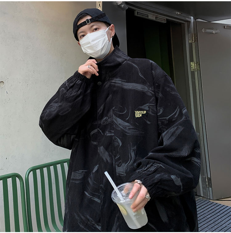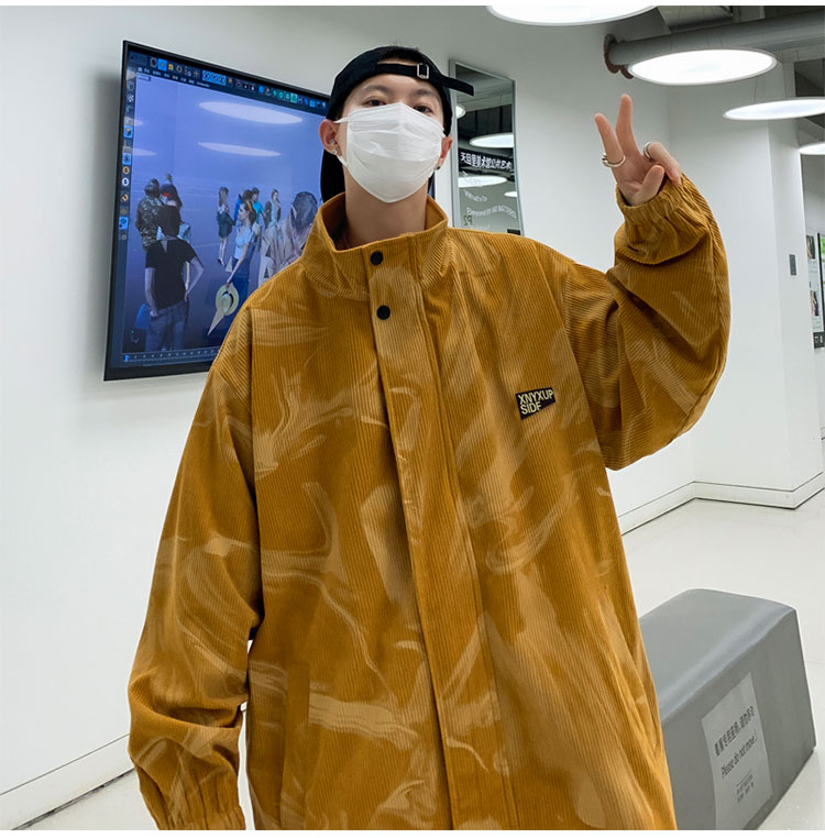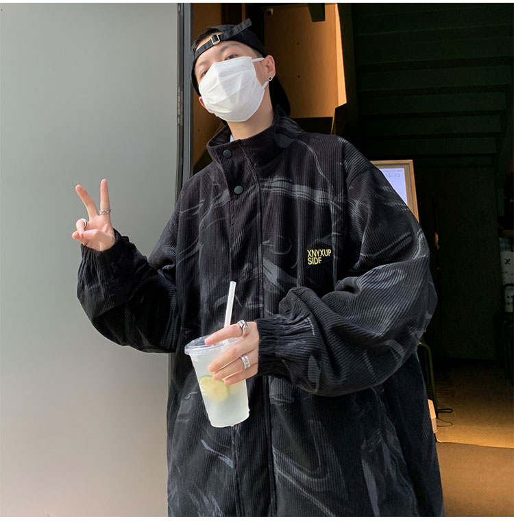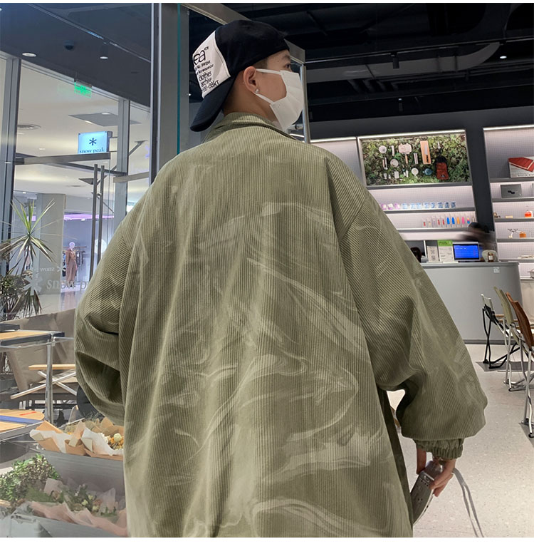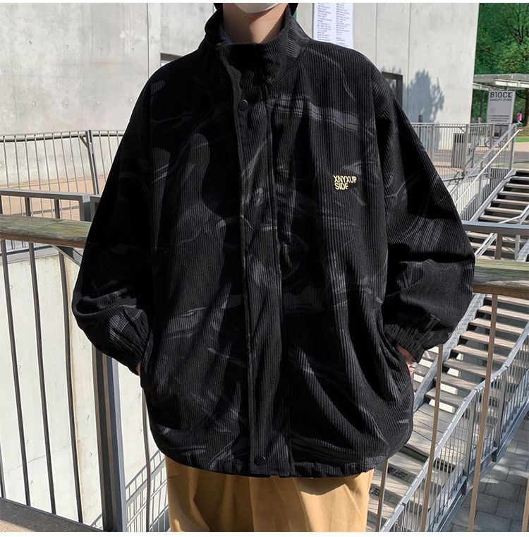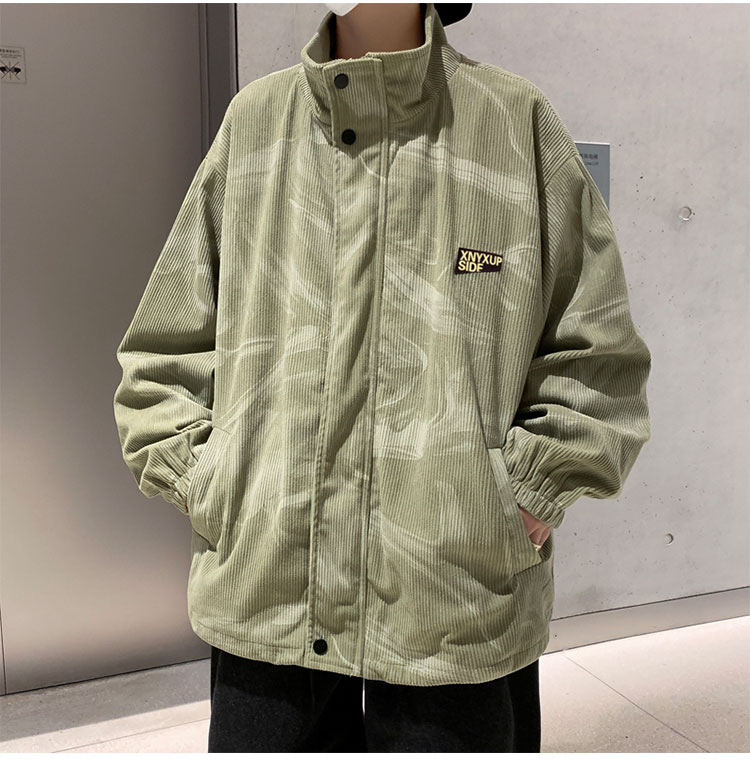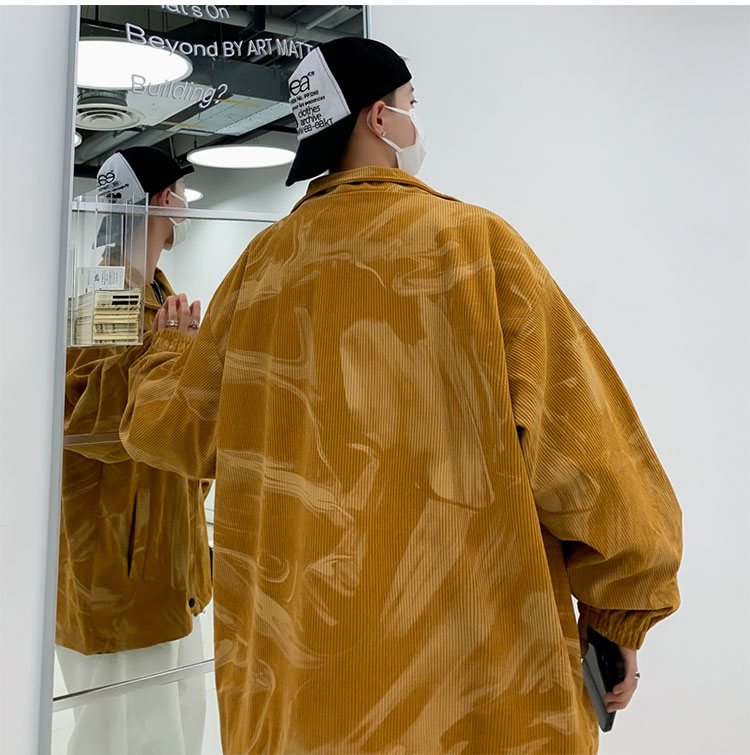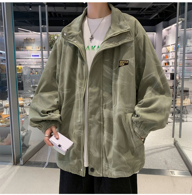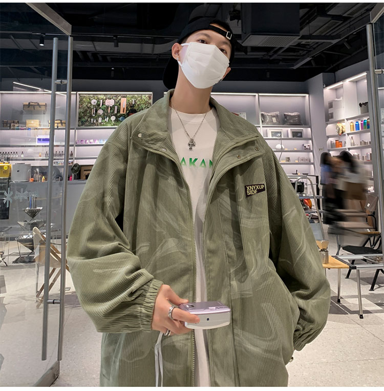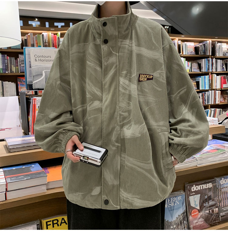 봄과 가을 코듀로이 옷깃 재킷 남자 일본 스타일 레트로 캐주얼 미국 스타일 유행 브랜드 Plagi Shuai 홍콩 스타일 유행 자수 재킷스토어 가기