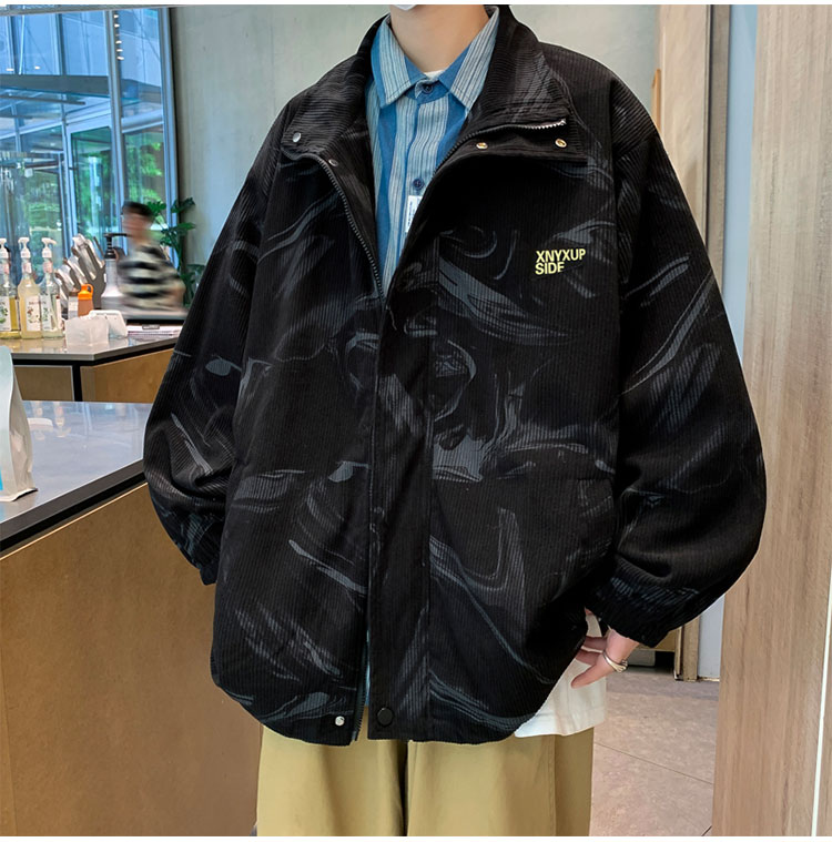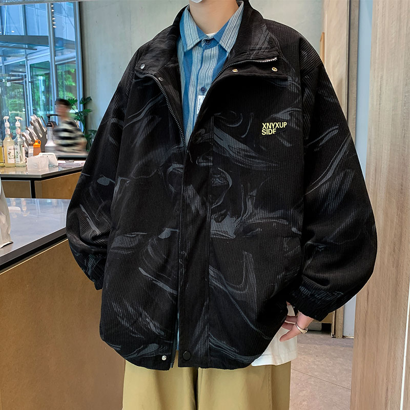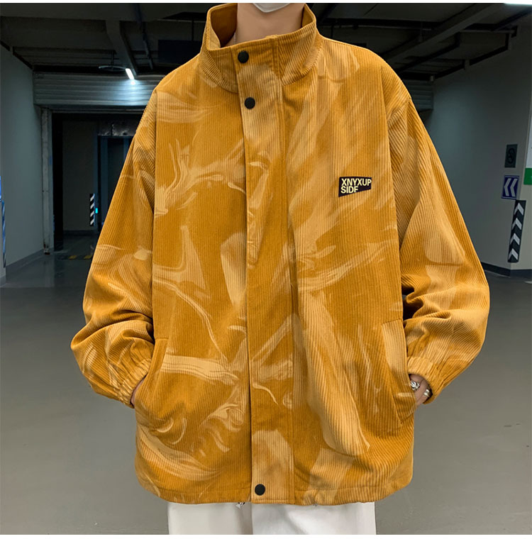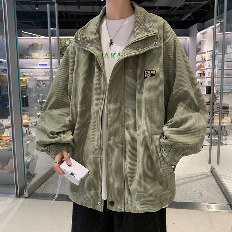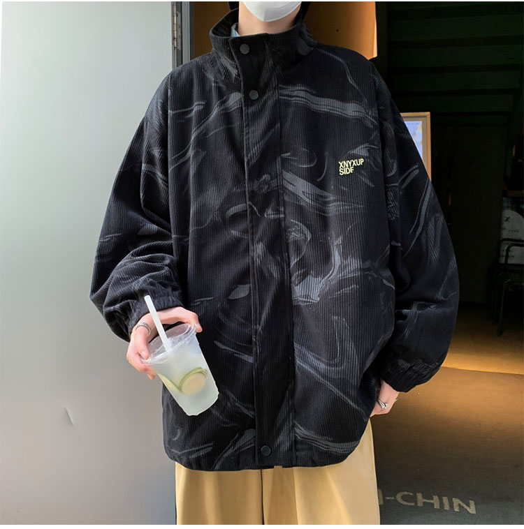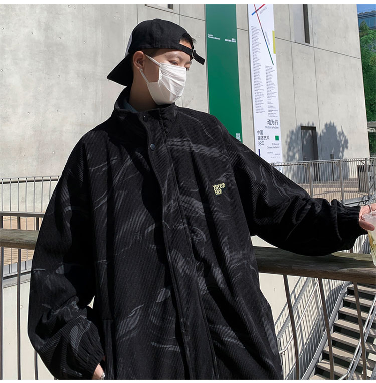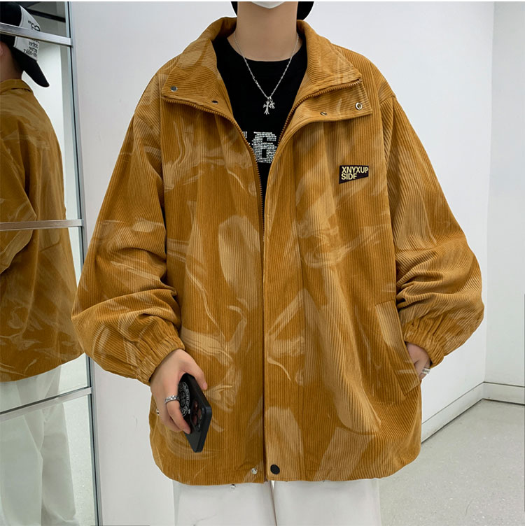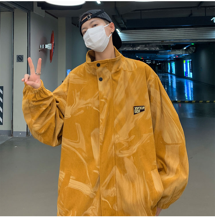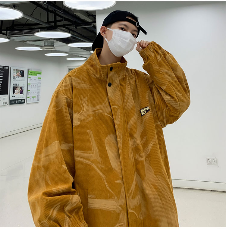 봄과 가을 코듀로이 옷깃 재킷 남자 일본 스타일 레트로 캐주얼 미국 스타일 유행 브랜드 Plagi Shuai 홍콩 스타일 유행 자수 재킷스토어 가기