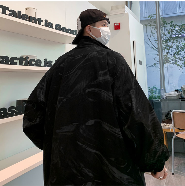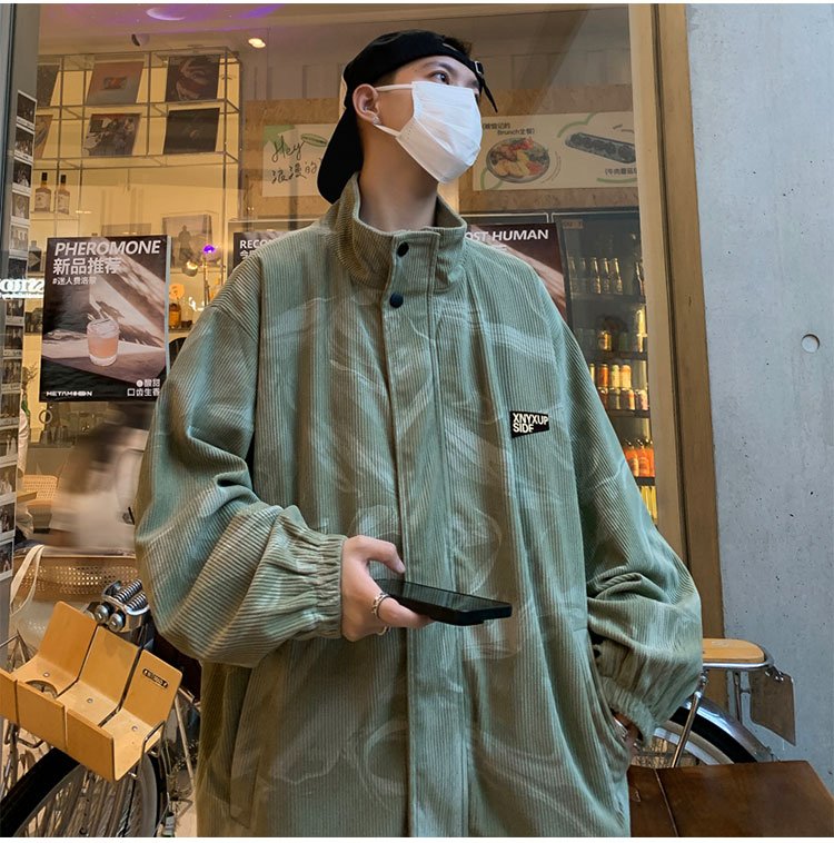 봄과 가을 코듀로이 옷깃 재킷 남자 일본 스타일 레트로 캐주얼 미국 스타일 유행 브랜드 Plagi Shuai 홍콩 스타일 유행 자수 재킷