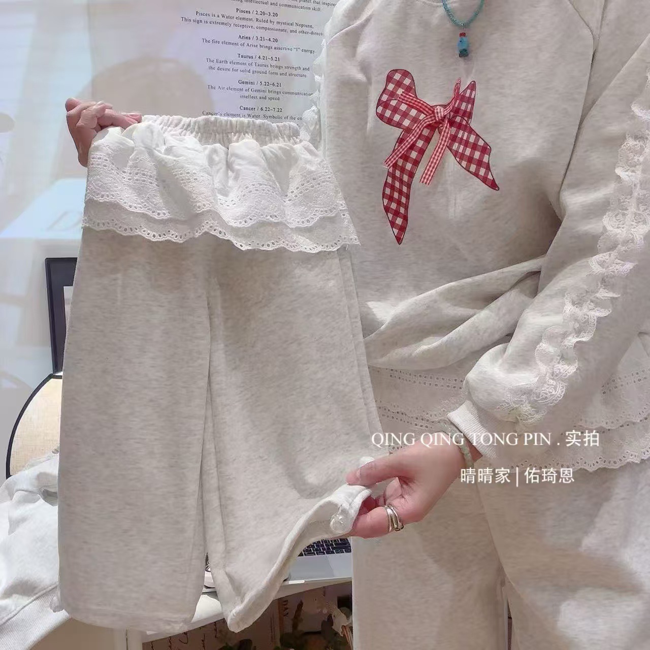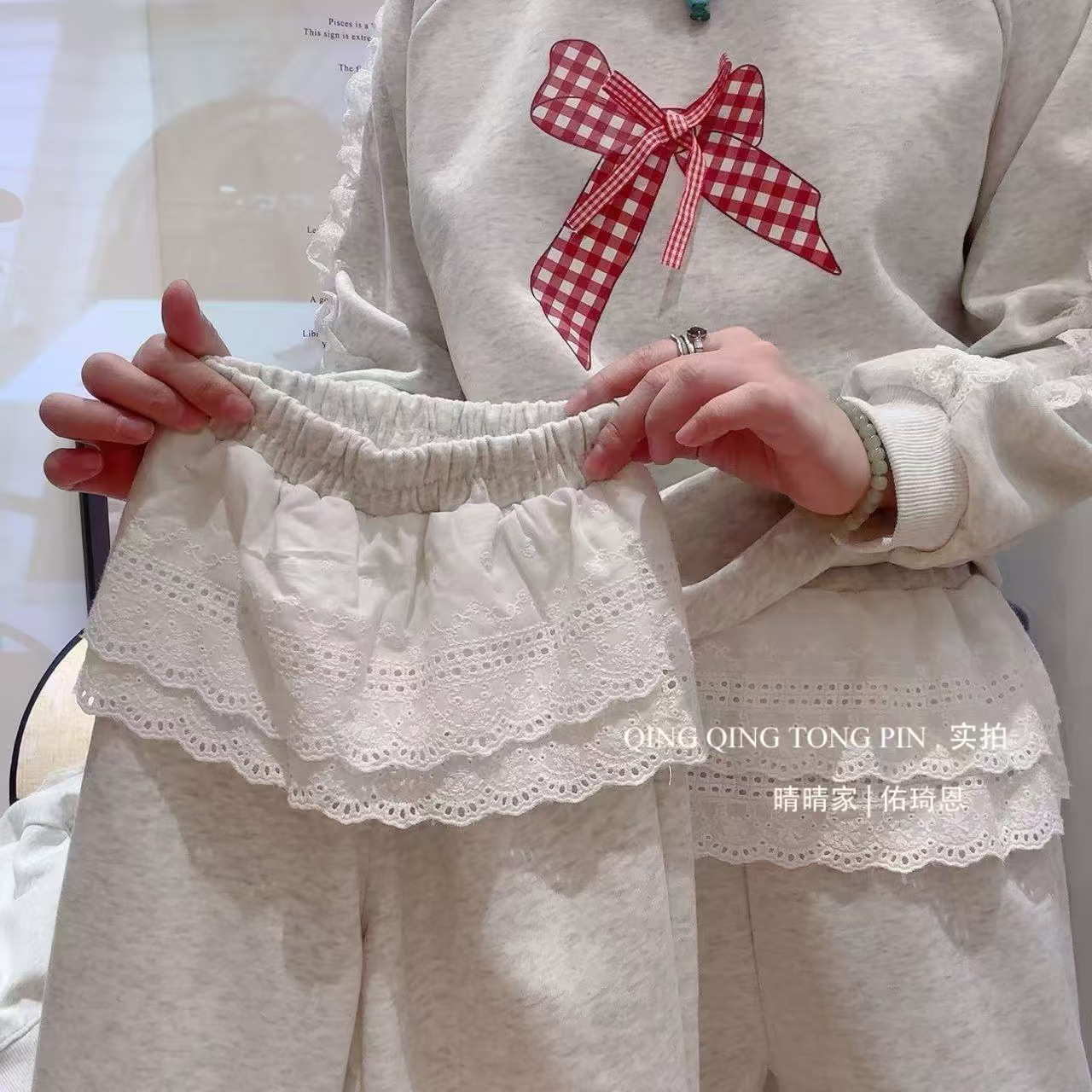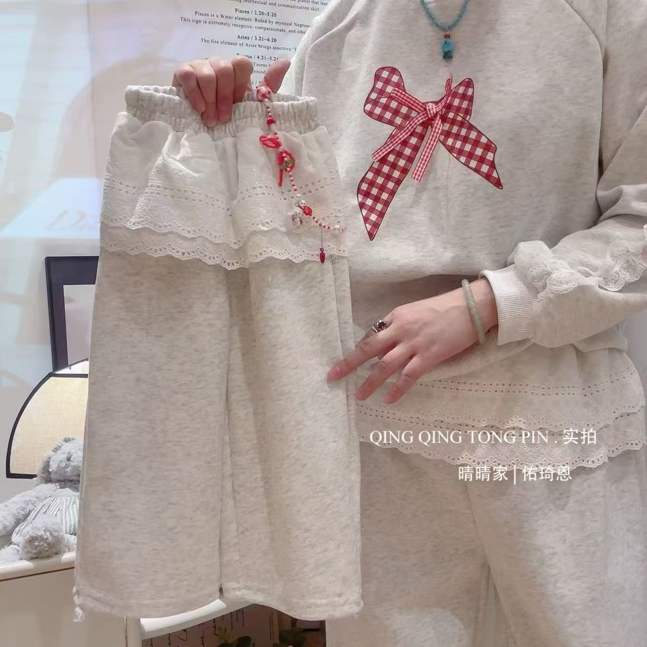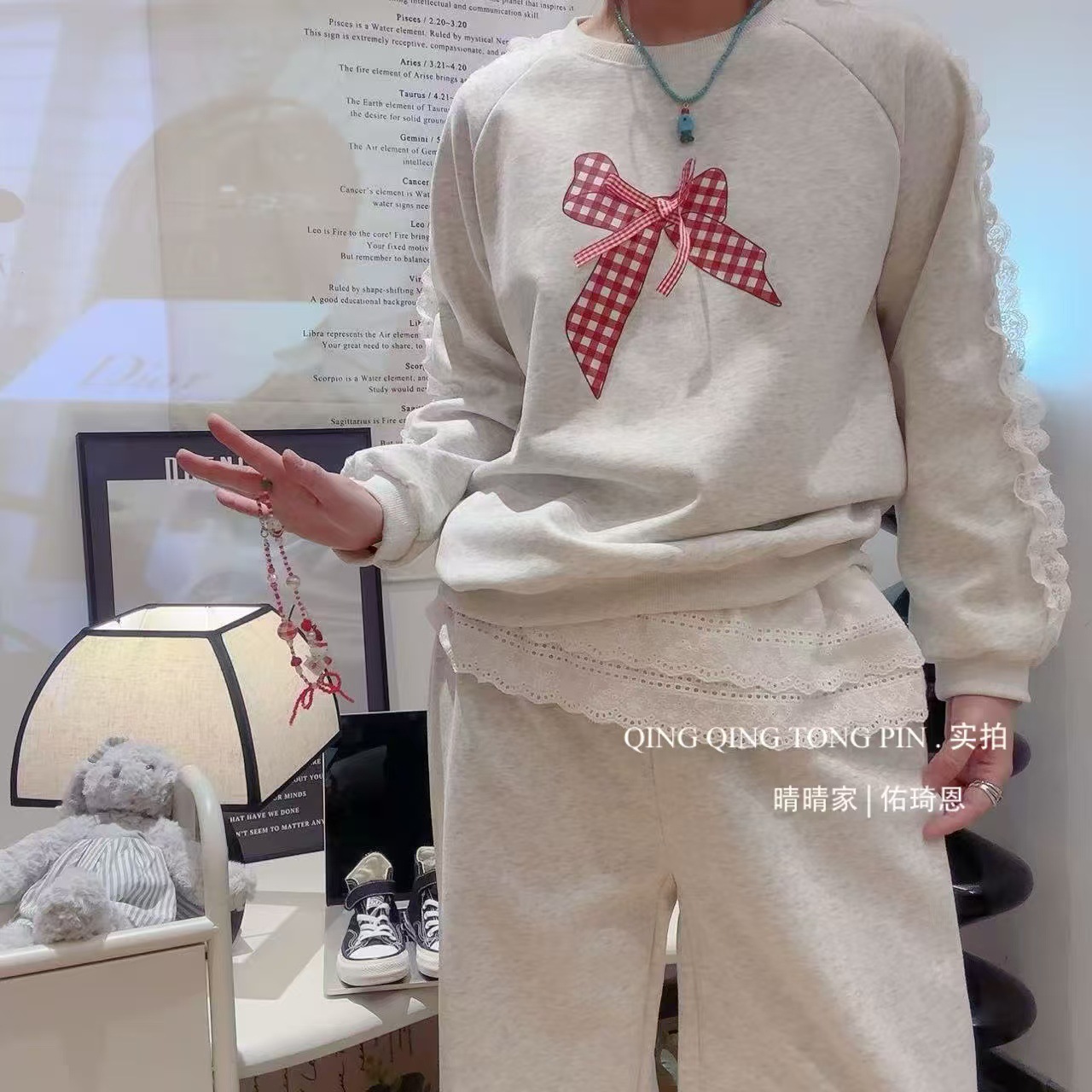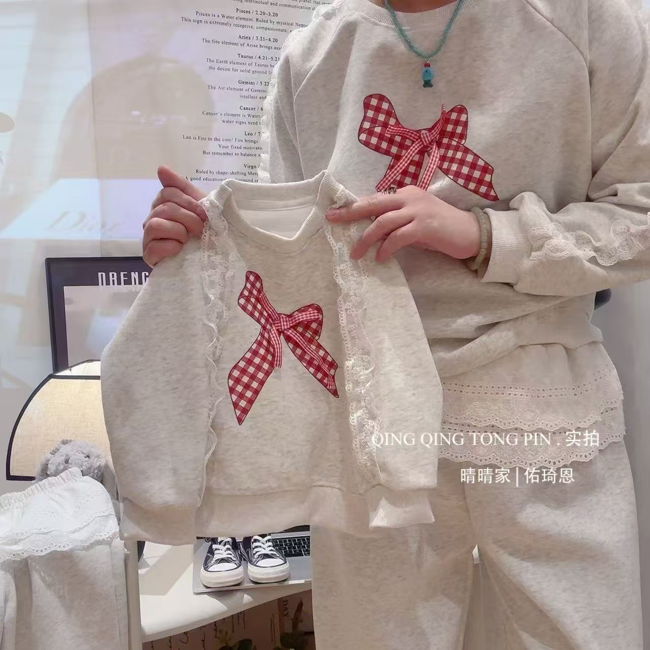 긴팔 대학 스타일 2026 가을 겨울 한국 스타일 리본 세트 달콤한 하이웨이스트 학생 캐주얼 패션스토어 가기
