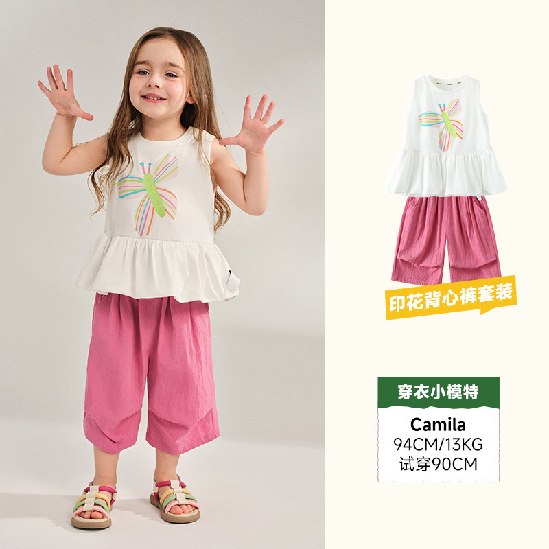 어린이 의류 2025 여름 새로운 어린이 귀여운 투피스 소녀의 달콤한 나비 반팔 바지 세트