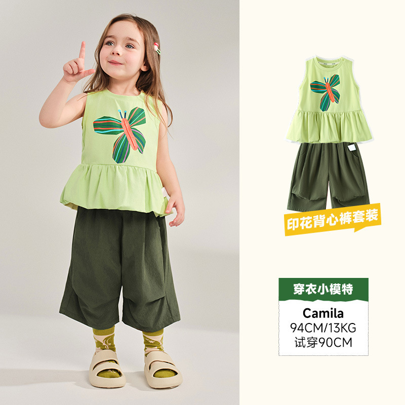어린이 의류 2025 여름 새로운 어린이 귀여운 투피스 소녀의 달콤한 나비 반팔 바지 세트스토어 가기
