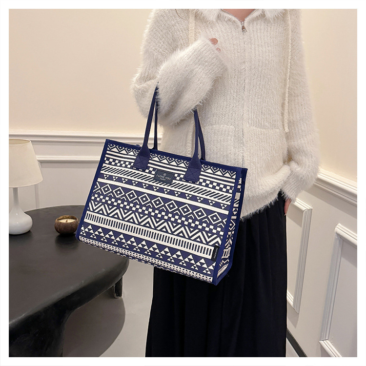 아마존 국경 간 레트로 민족 캔버스 토트 백 패션 통근 미라 가방 작업 손 어깨 가방스토어 가기