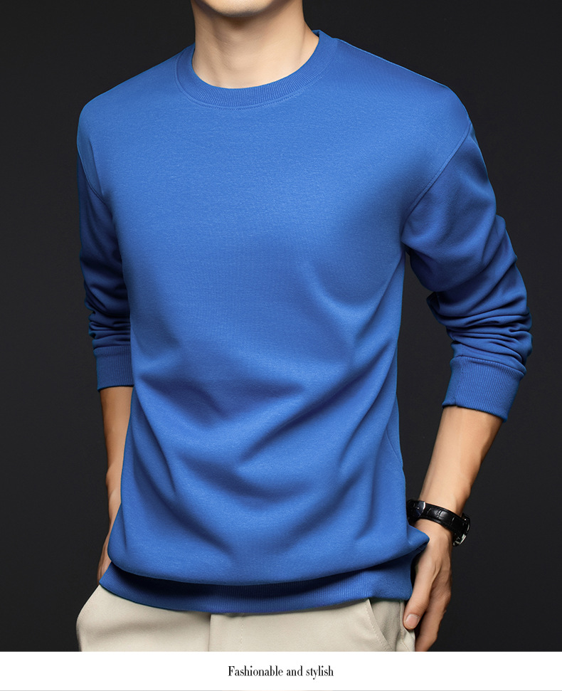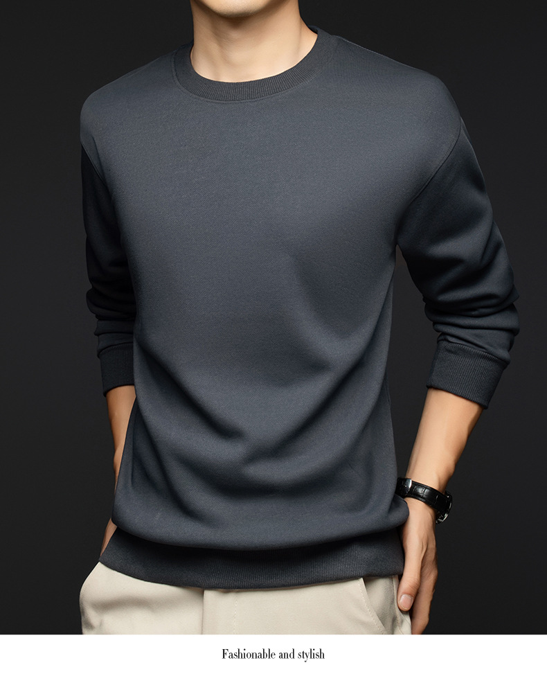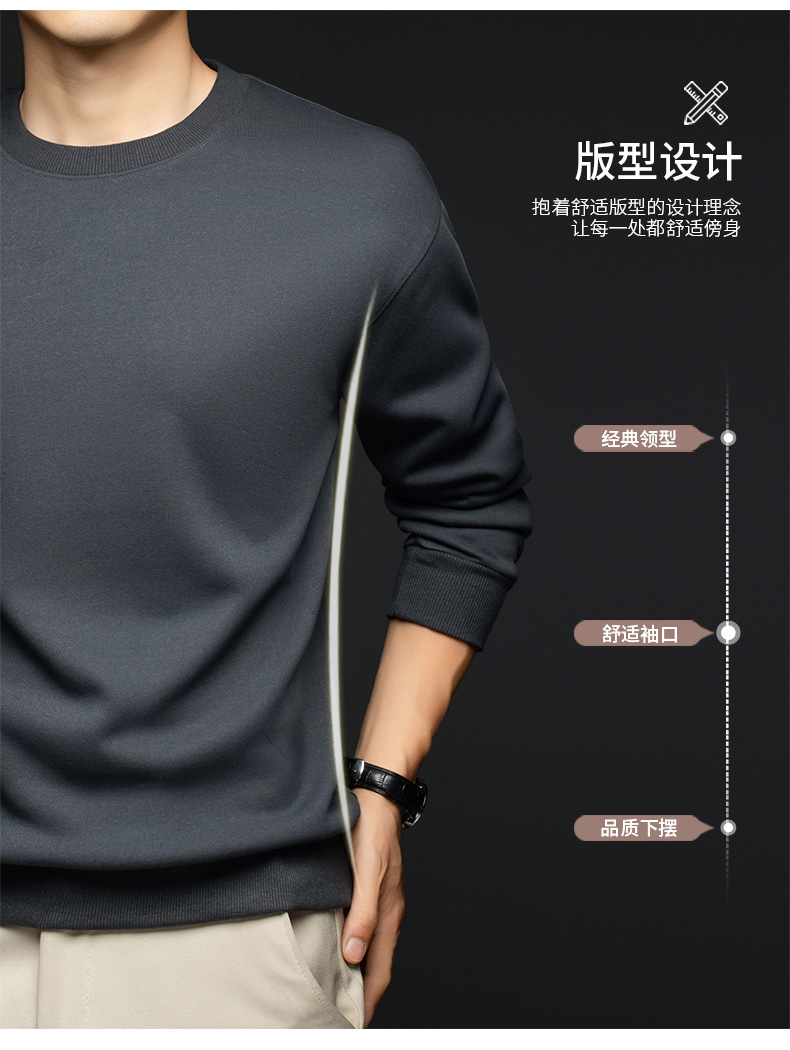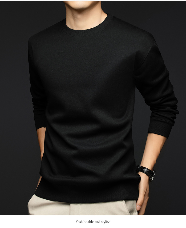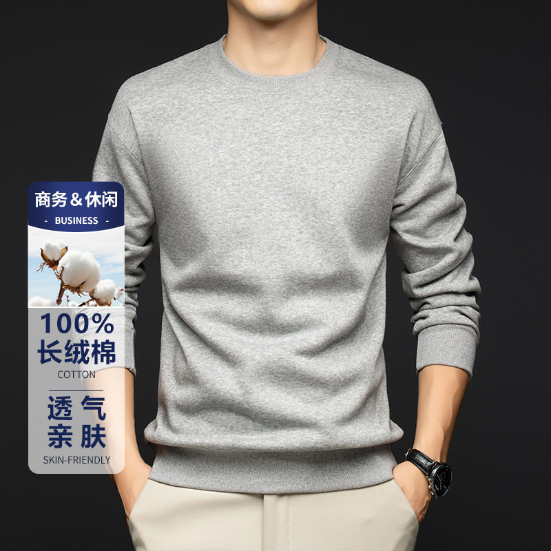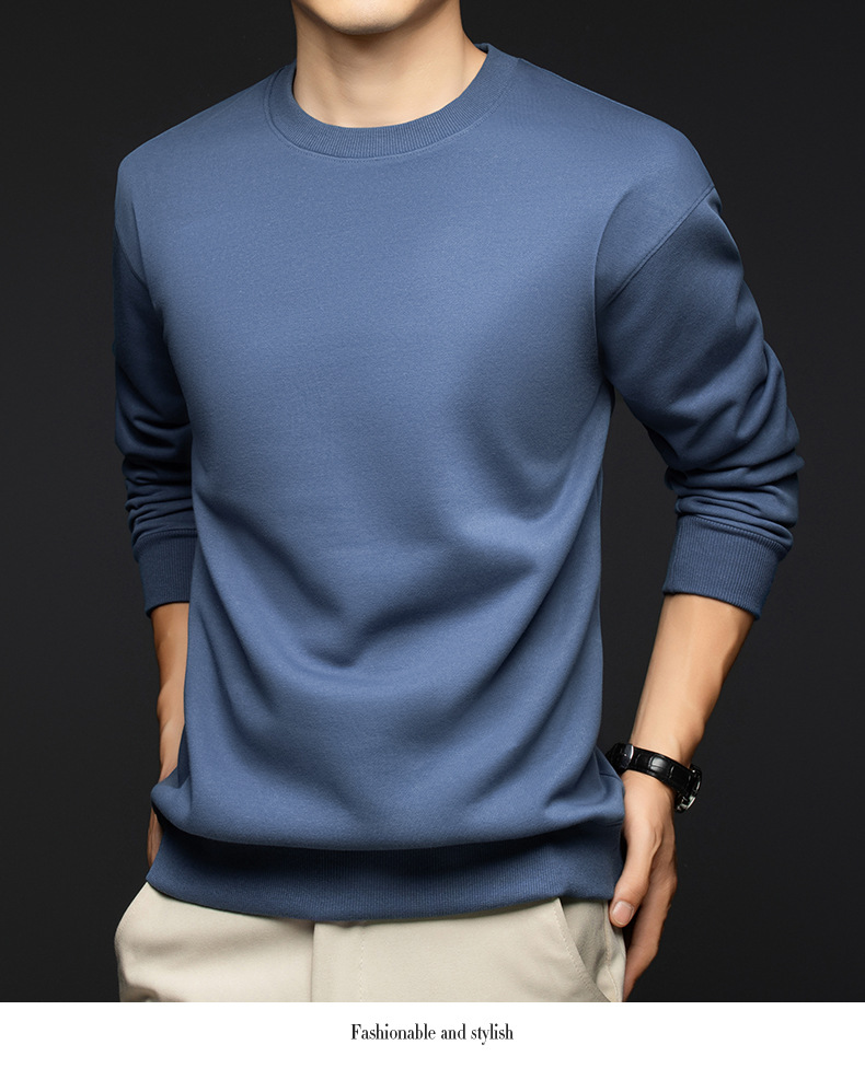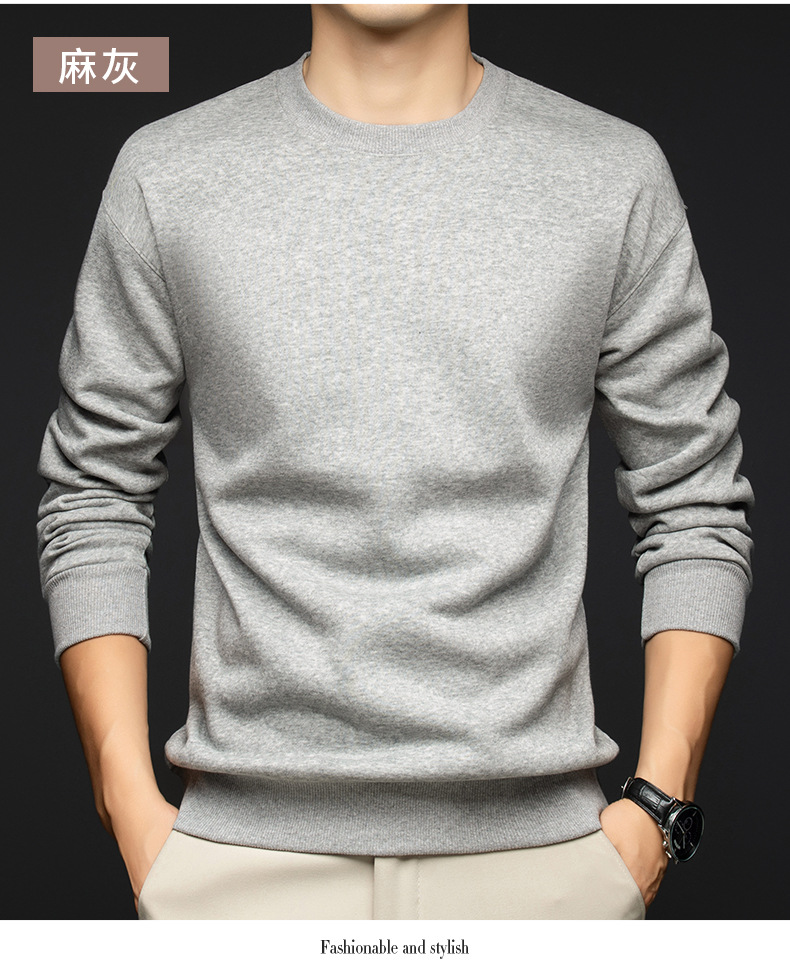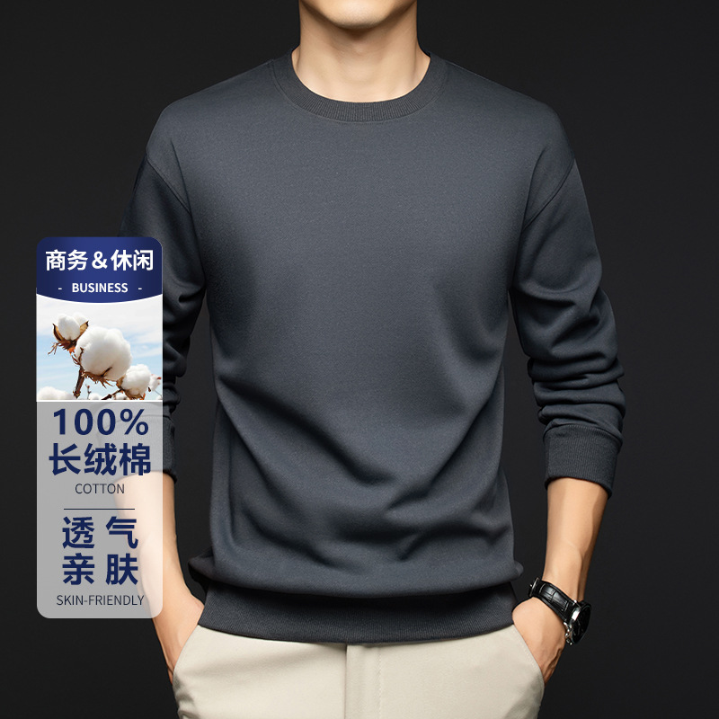 헤비 320g 면화 남성 스웨터 2025 봄 새로운 청소년 느슨한 어깨 둥근 목 바닥 긴 소매 티셔츠스토어 가기