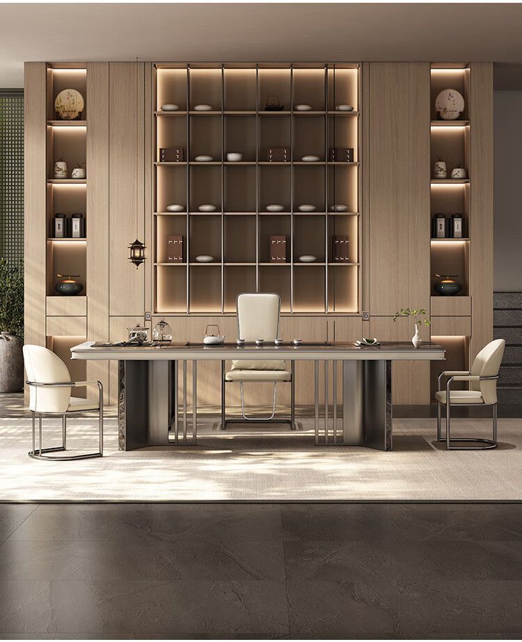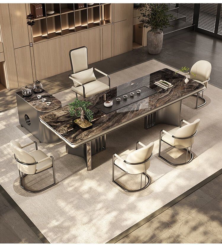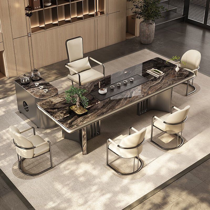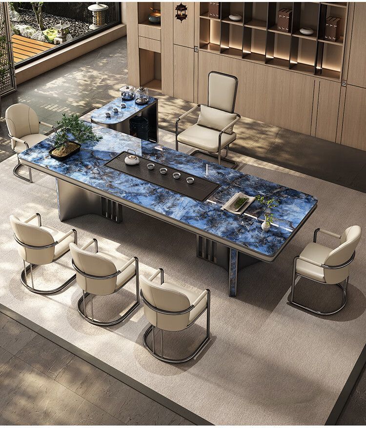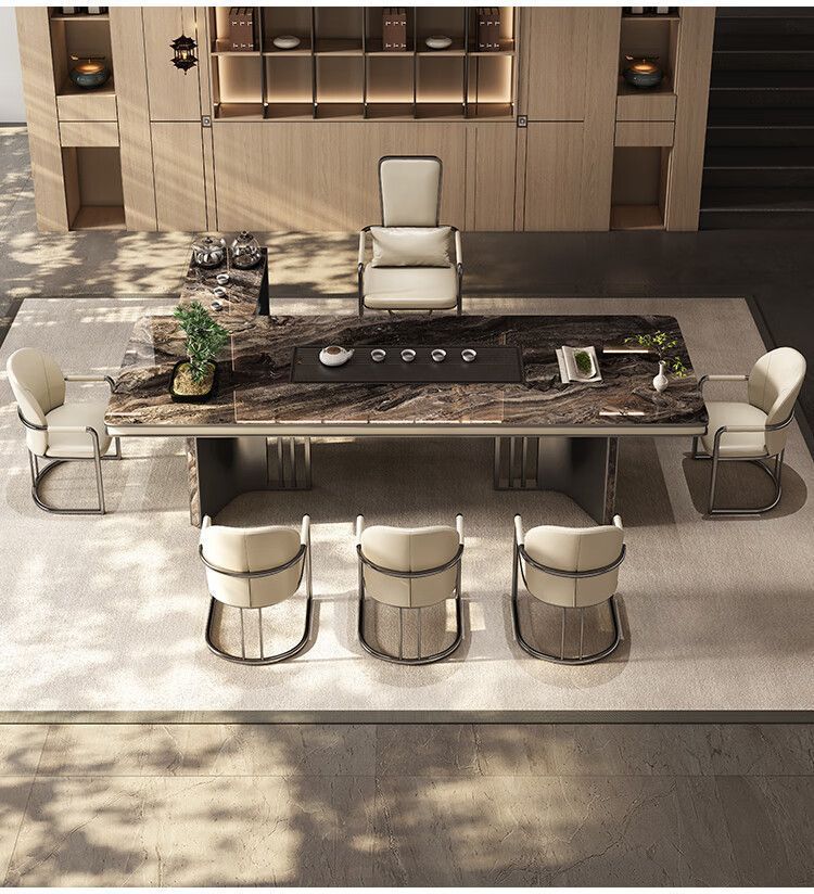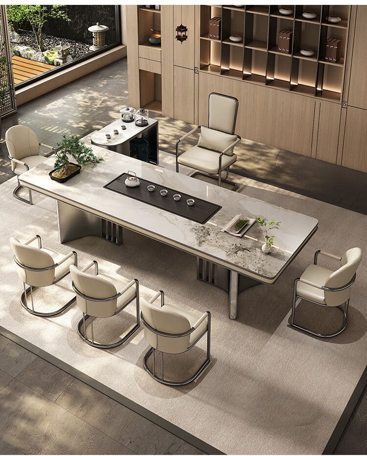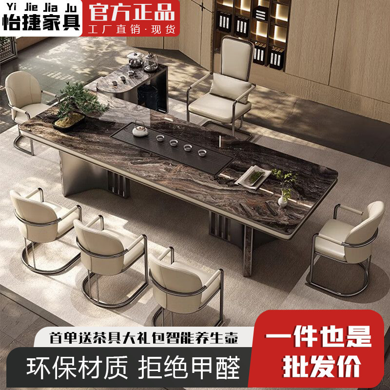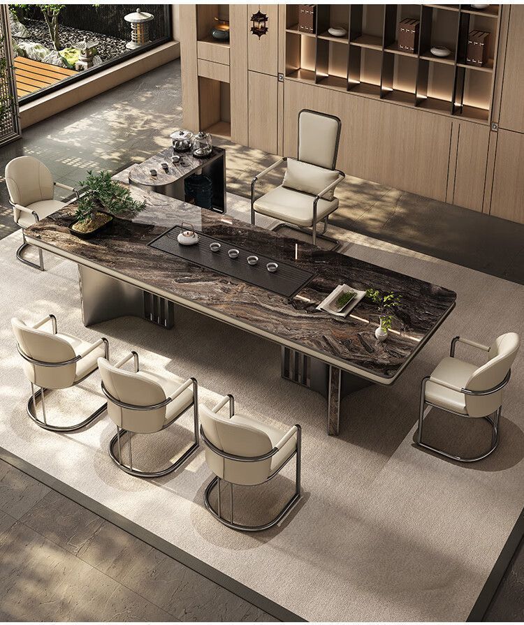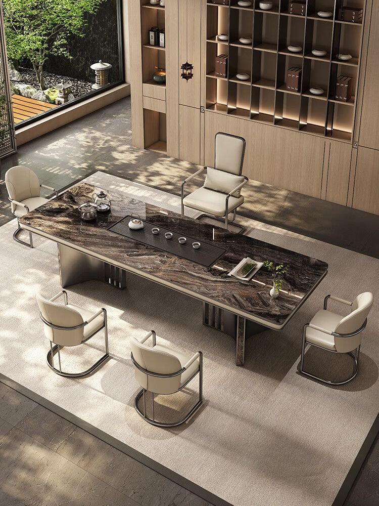 새로운 중국 스타일 락 보드 차 테이블 거실 발코니 차 테이블과 의자 조합 간단한 사무실 차 홈 통합 커피 테이블