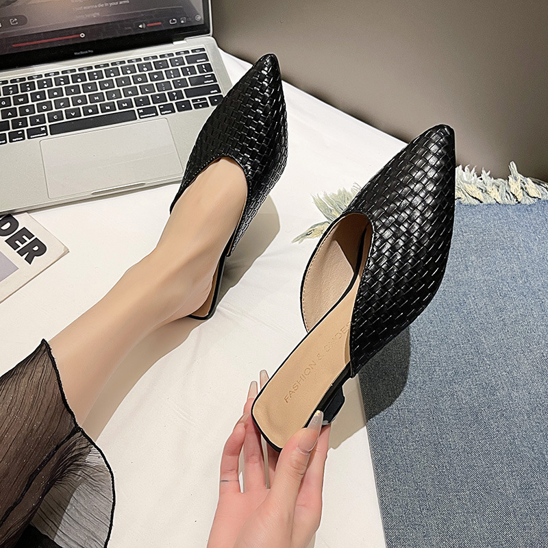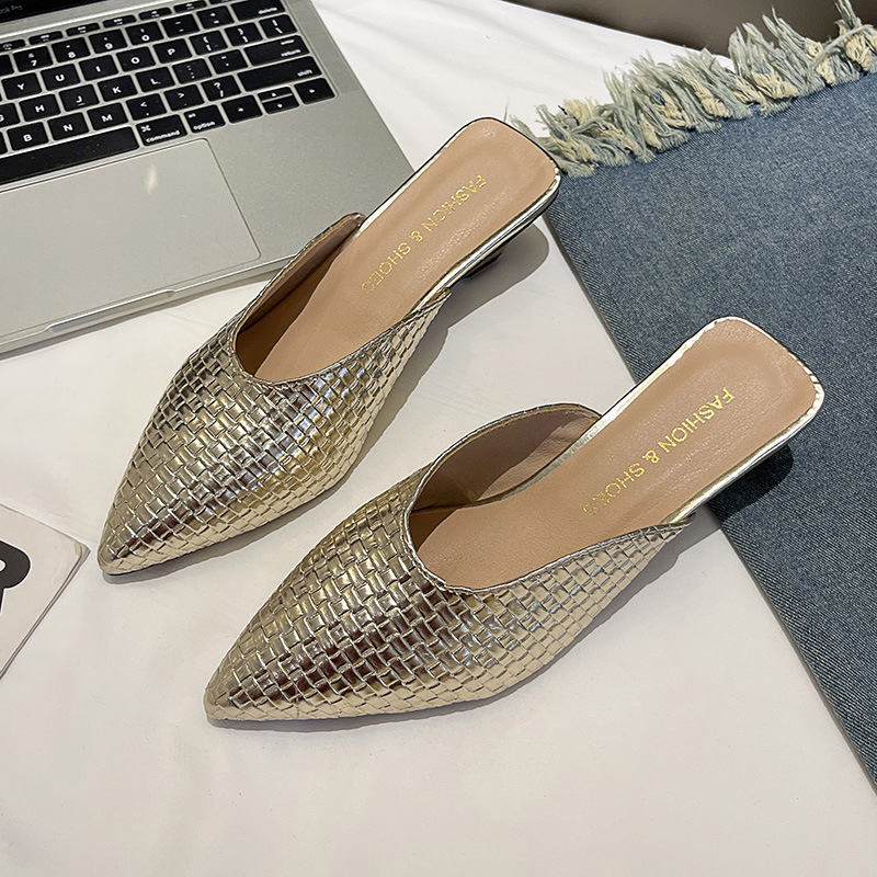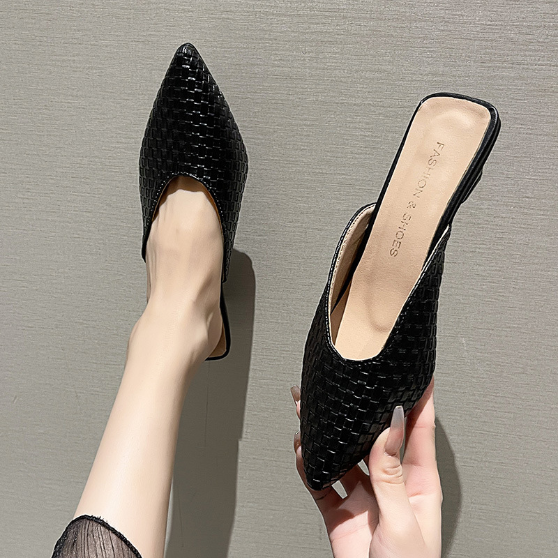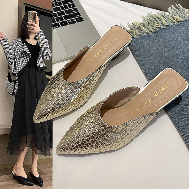 2025 봄 여름 패션 바오터우 청키 힐 슬리퍼 여성 한국 스타일 요정 스타일 게으른 미드 힐 외부 노새 신발 우아한스토어 가기