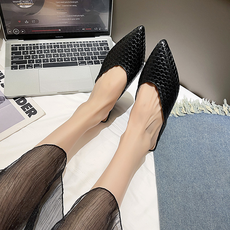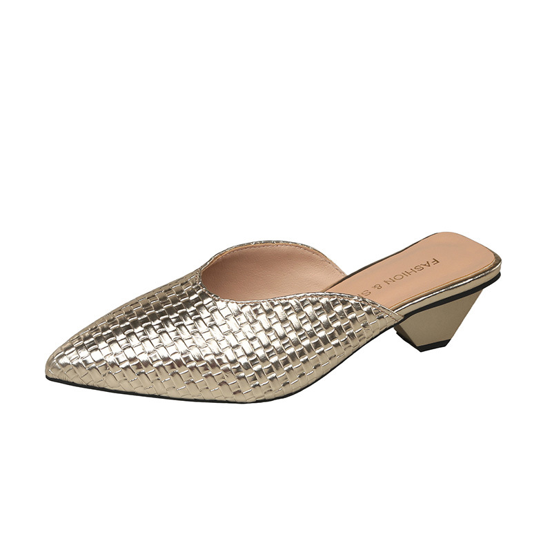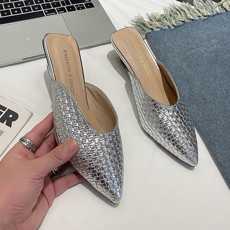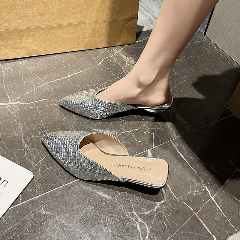2025 봄 여름 패션 바오터우 청키 힐 슬리퍼 여성 한국 스타일 요정 스타일 게으른 미드 힐 외부 노새 신발 우아한