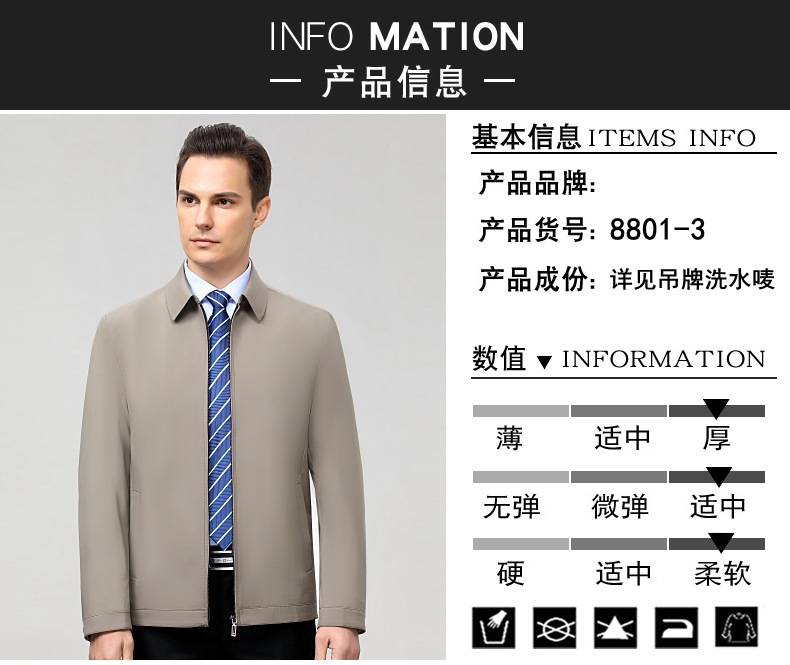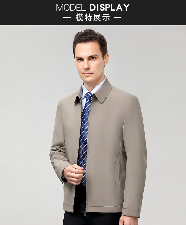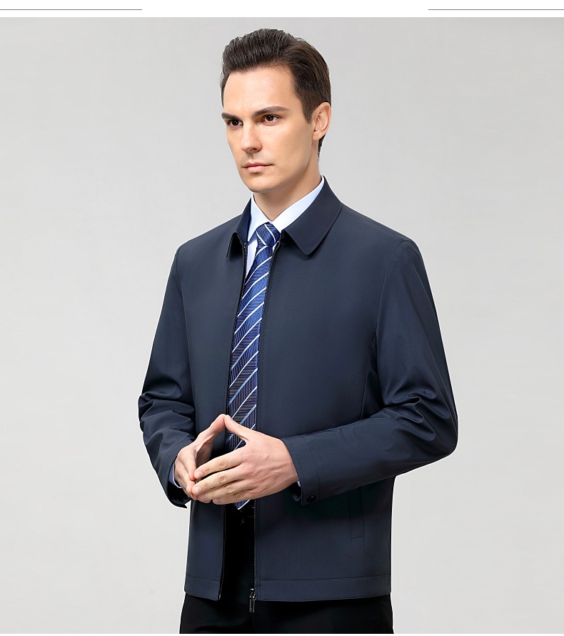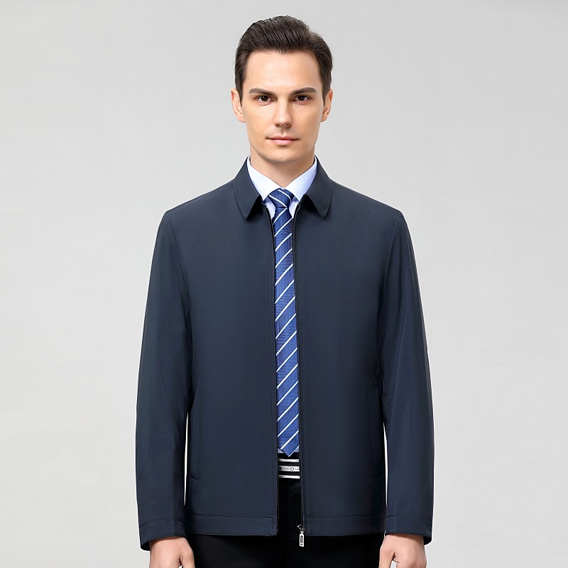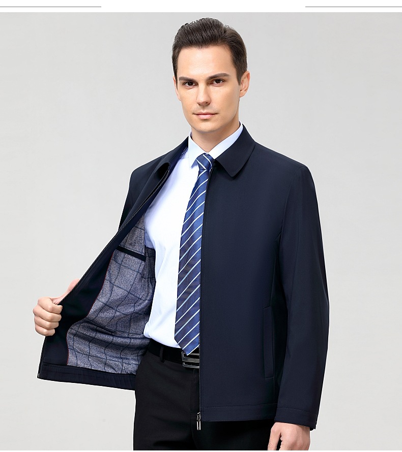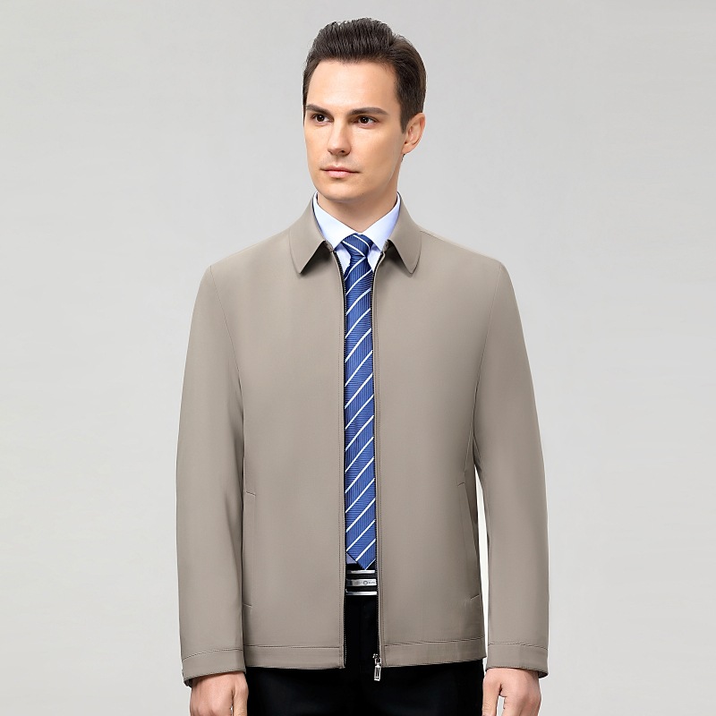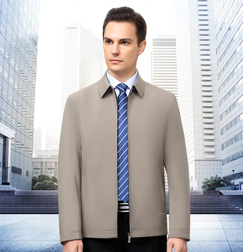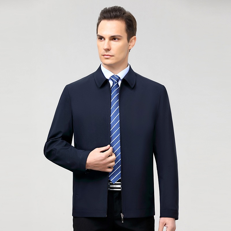 중년 및 고령자를위한 정품 하이 엔드 봄 및 가을 남성복 얇은 짧은 실크 재킷 공무원 간부 행정 재킷스토어 가기
