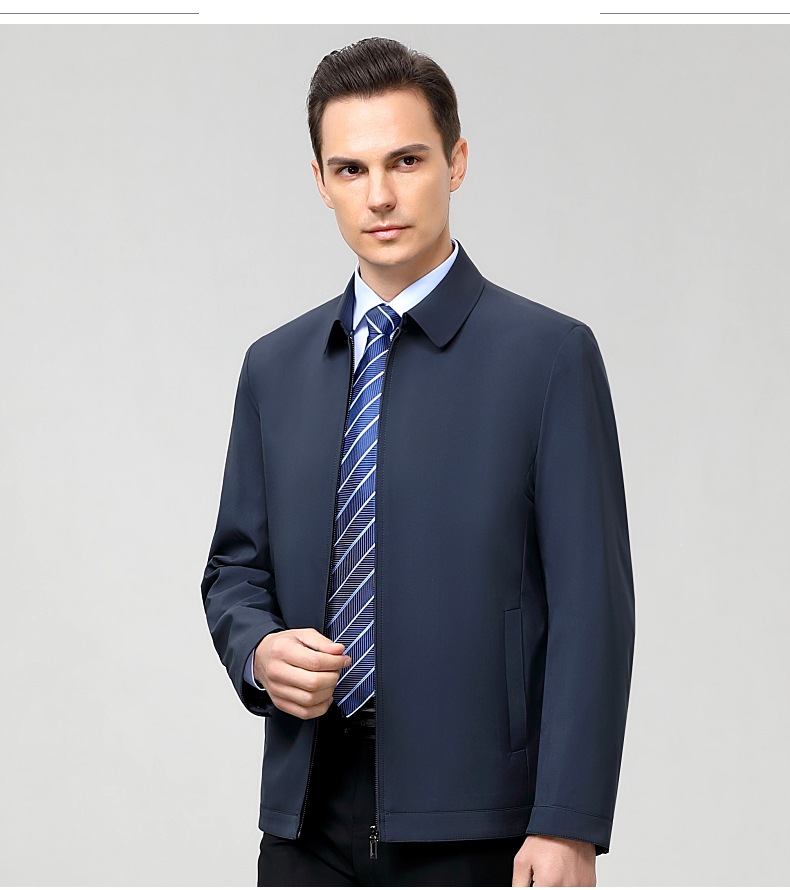 중년 및 고령자를위한 정품 하이 엔드 봄 및 가을 남성복 얇은 짧은 실크 재킷 공무원 간부 행정 재킷