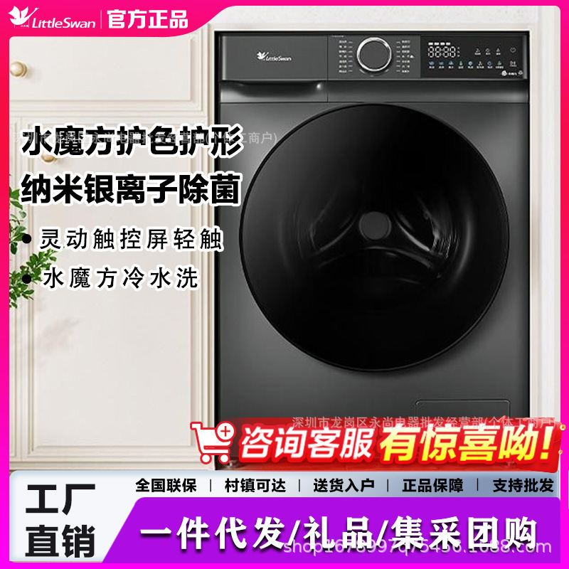 리틀 스완 루빅스 큐브 10kg 대용량 자동 주파수 변환 드럼 세탁기 내장 TG100V618T